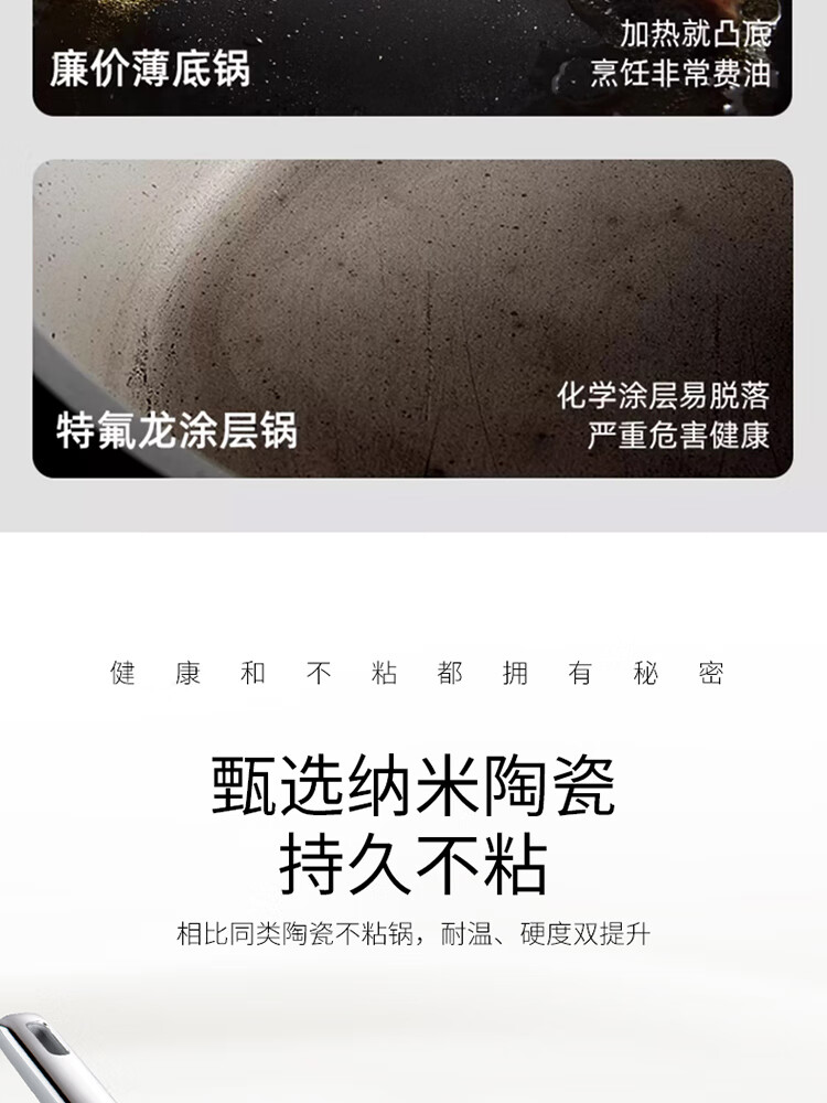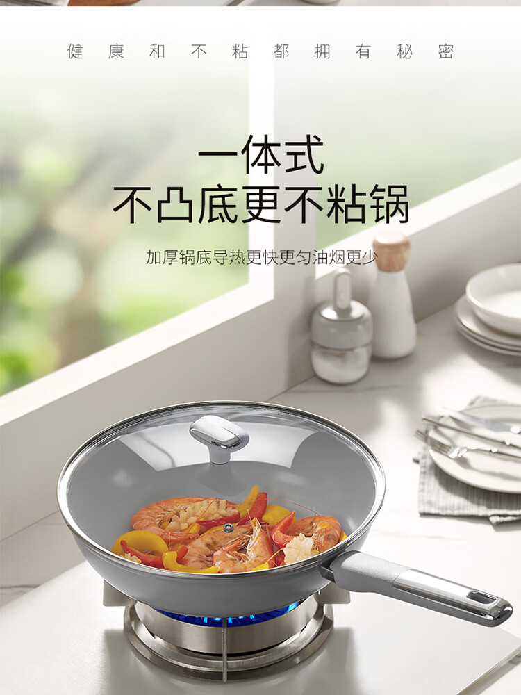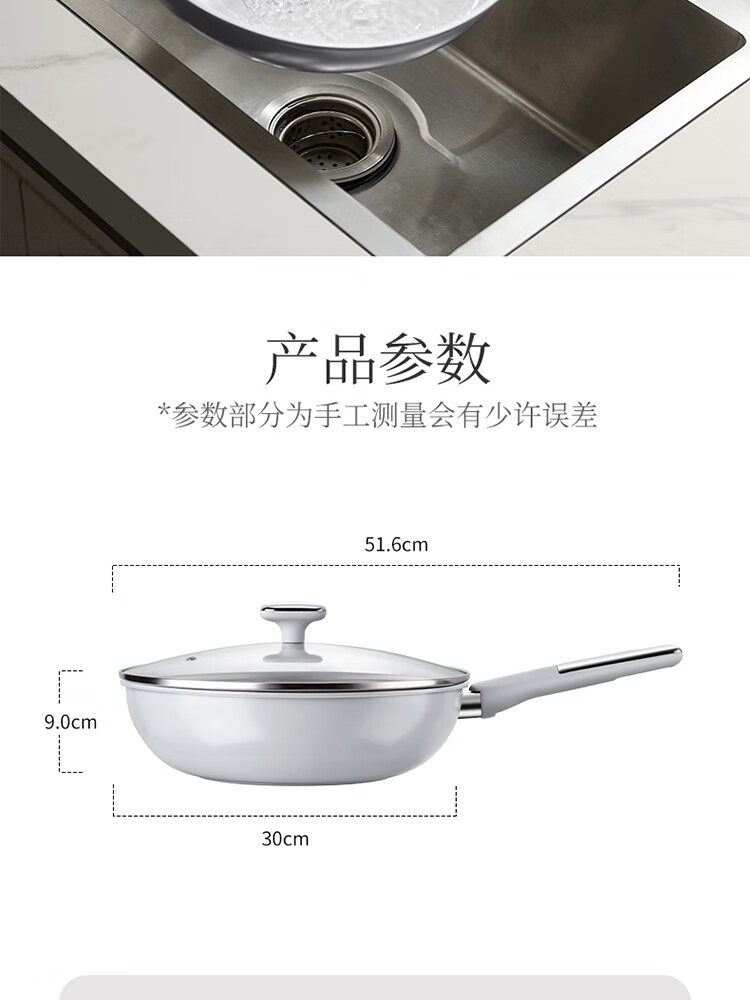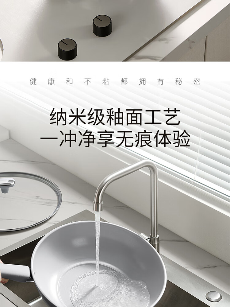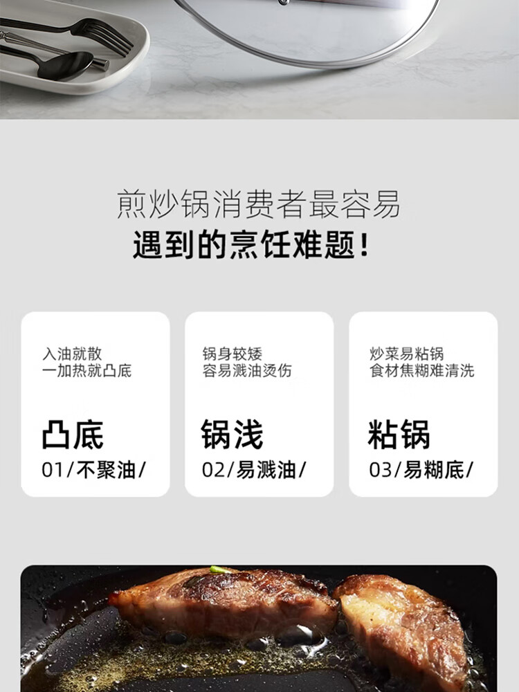 人性化高强度钢化玻璃盖,持久耐用,烹饪美味一目了然;锅沿防滴漏设计,可将汤汁轻松倒出,使用方便;精铁材质制造,传热更快,受热均匀
