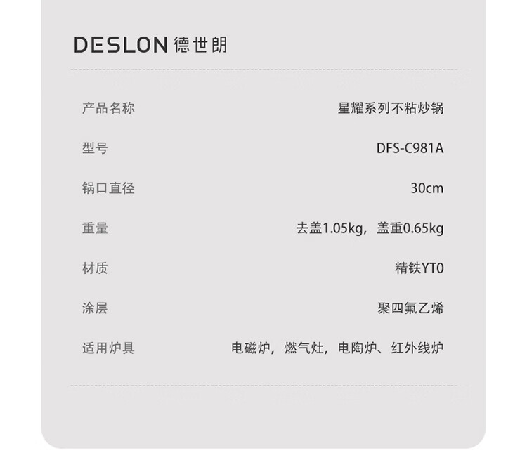 德世朗 星耀系列不粘炒锅30cmDFS-C981A