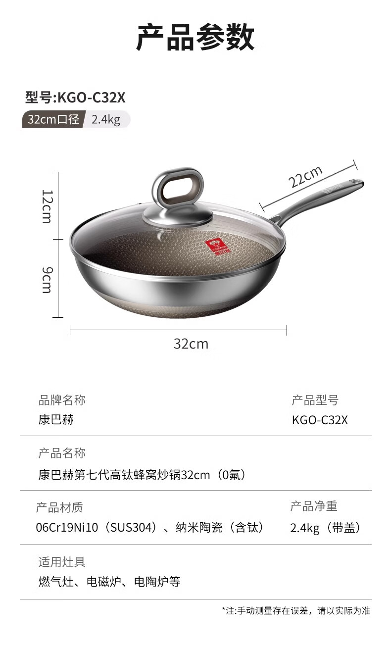 康巴赫 七代有钛0氟双蜂窝32cmKGO-C32X