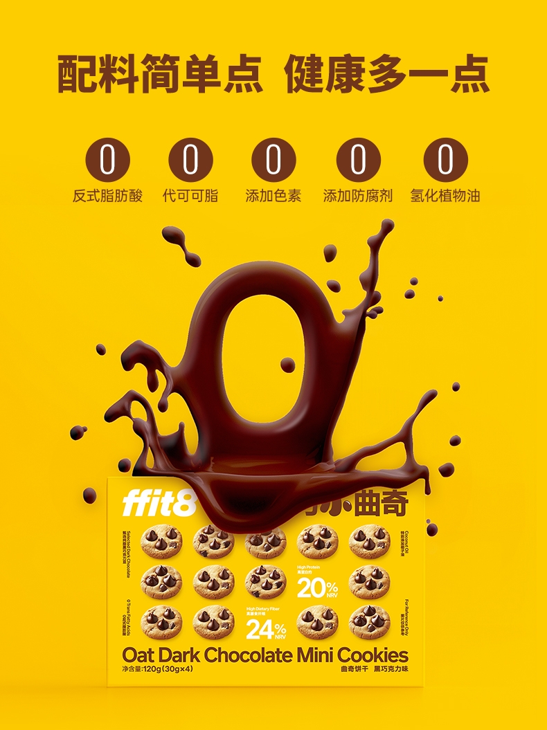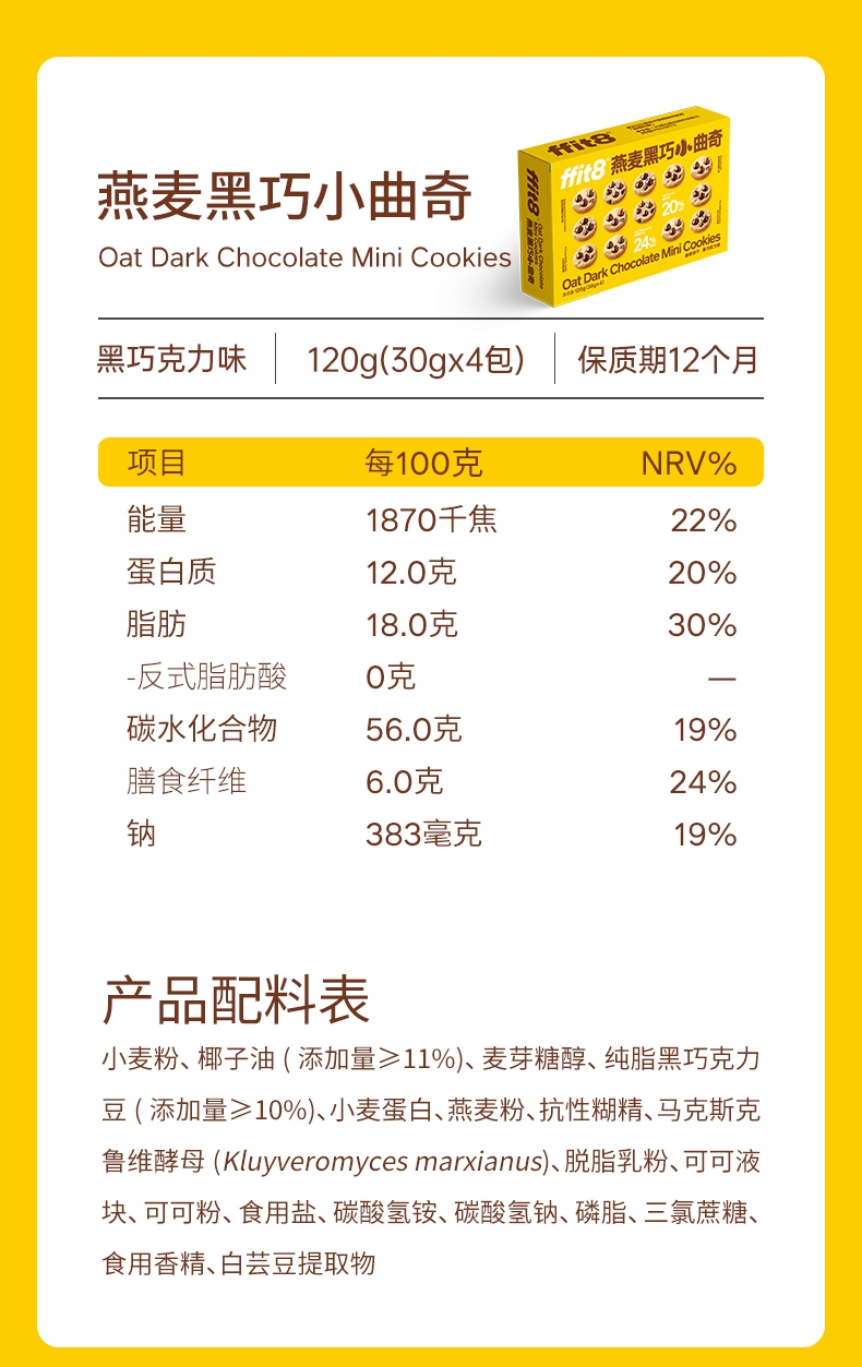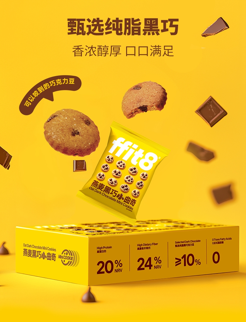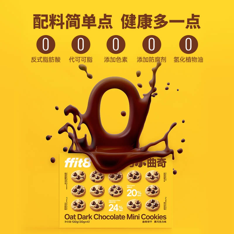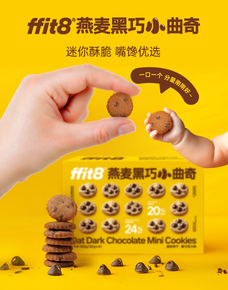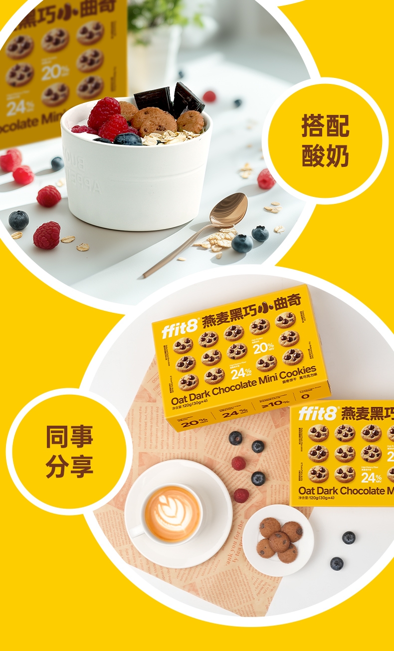 ffit8 燕麦黑巧小曲奇饼干120g*3盒