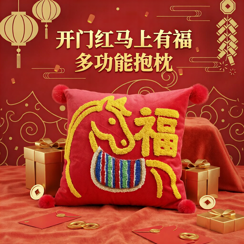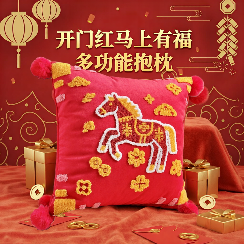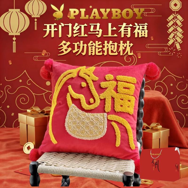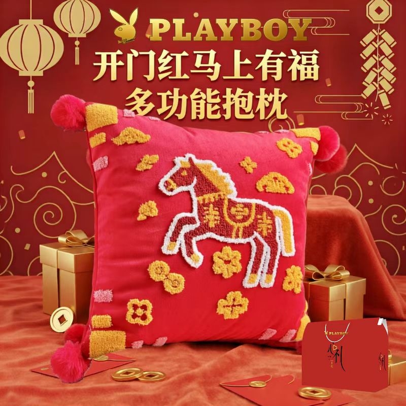 花花公子 开门红马年有福刺绣多功能抱枕PLAYBOY-193