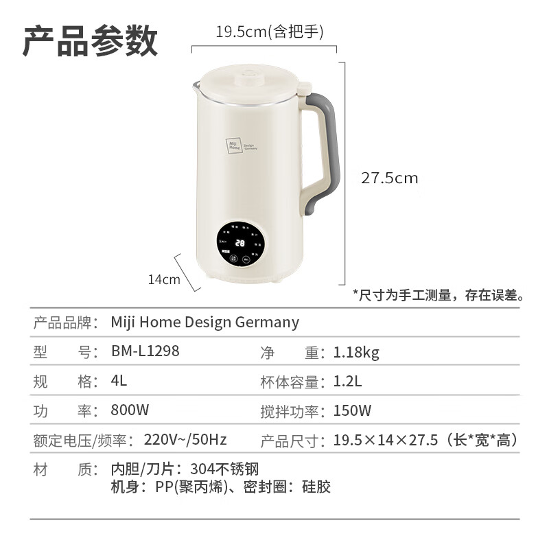 功率:加热功率800W 220V~/50Hz、搅拌功率150W 220V~/50Hz