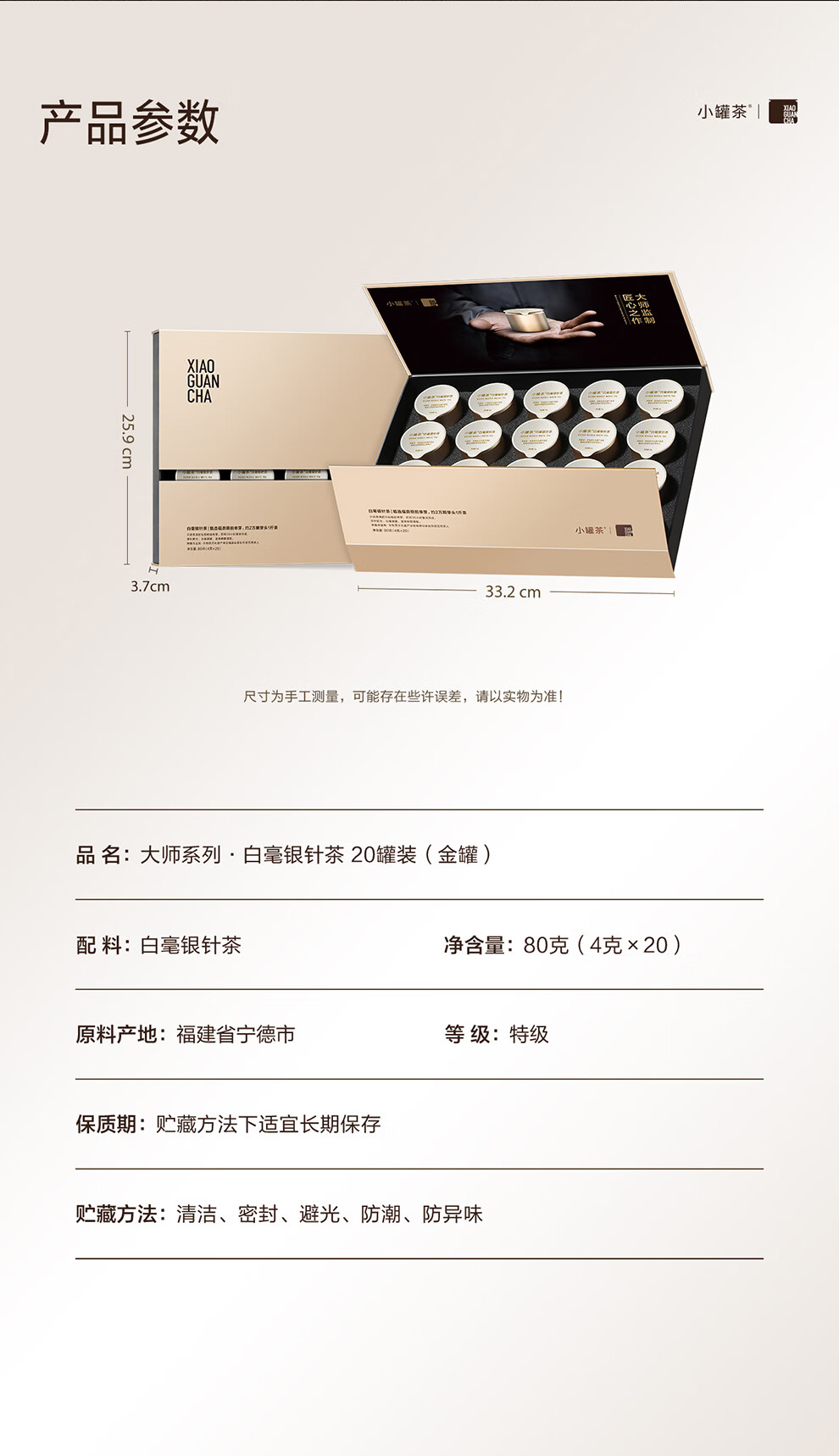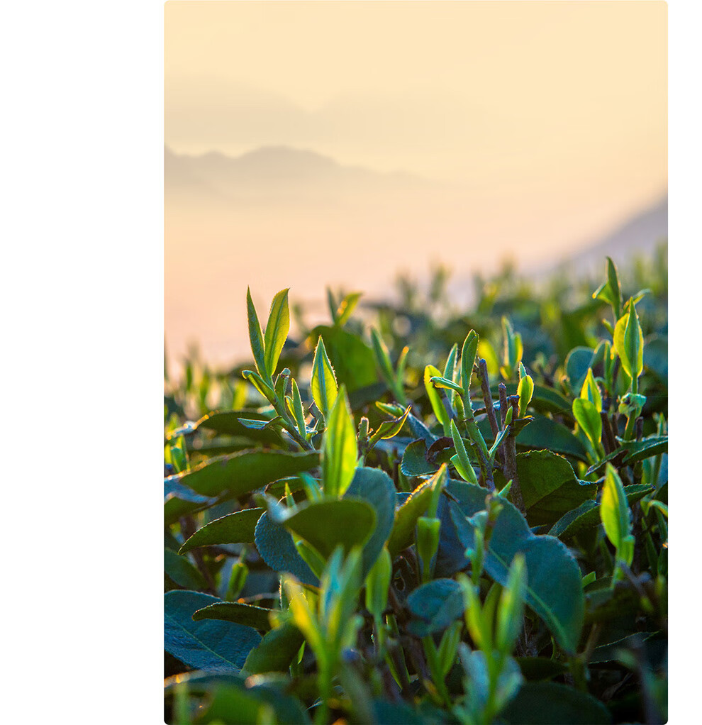 汤色浅杏黄明亮;鲜醇清甜毫味足;干茶芽针肥壮挺直,茸毛显银白匀亮
