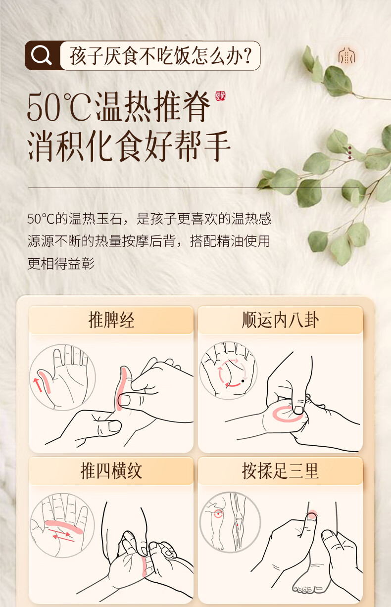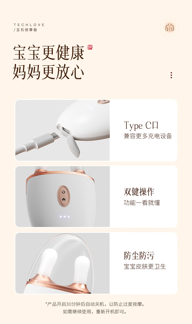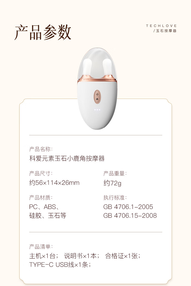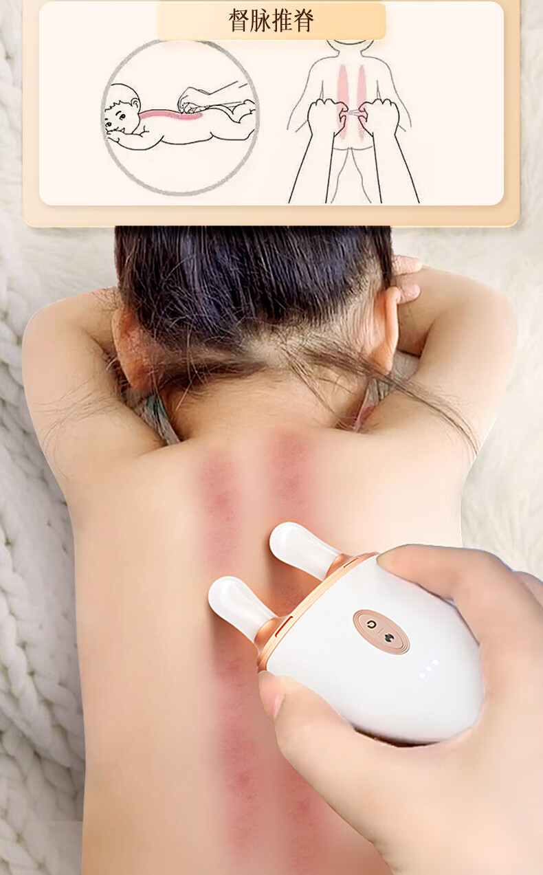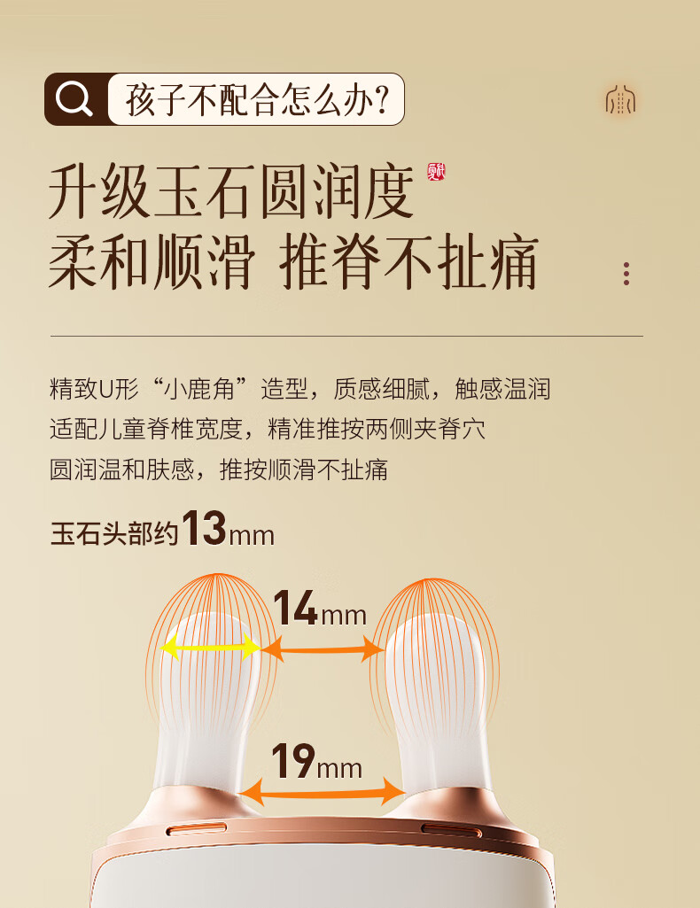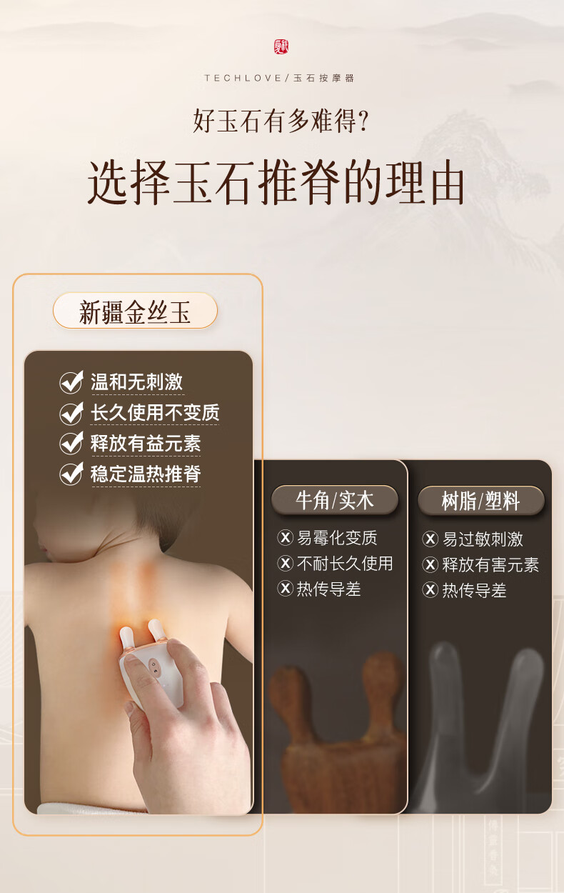 升级双玉石U形按摩头,圆润温和推刮;三档温度 + 震动按摩,放松促循环;75g轻巧精致,随身易携