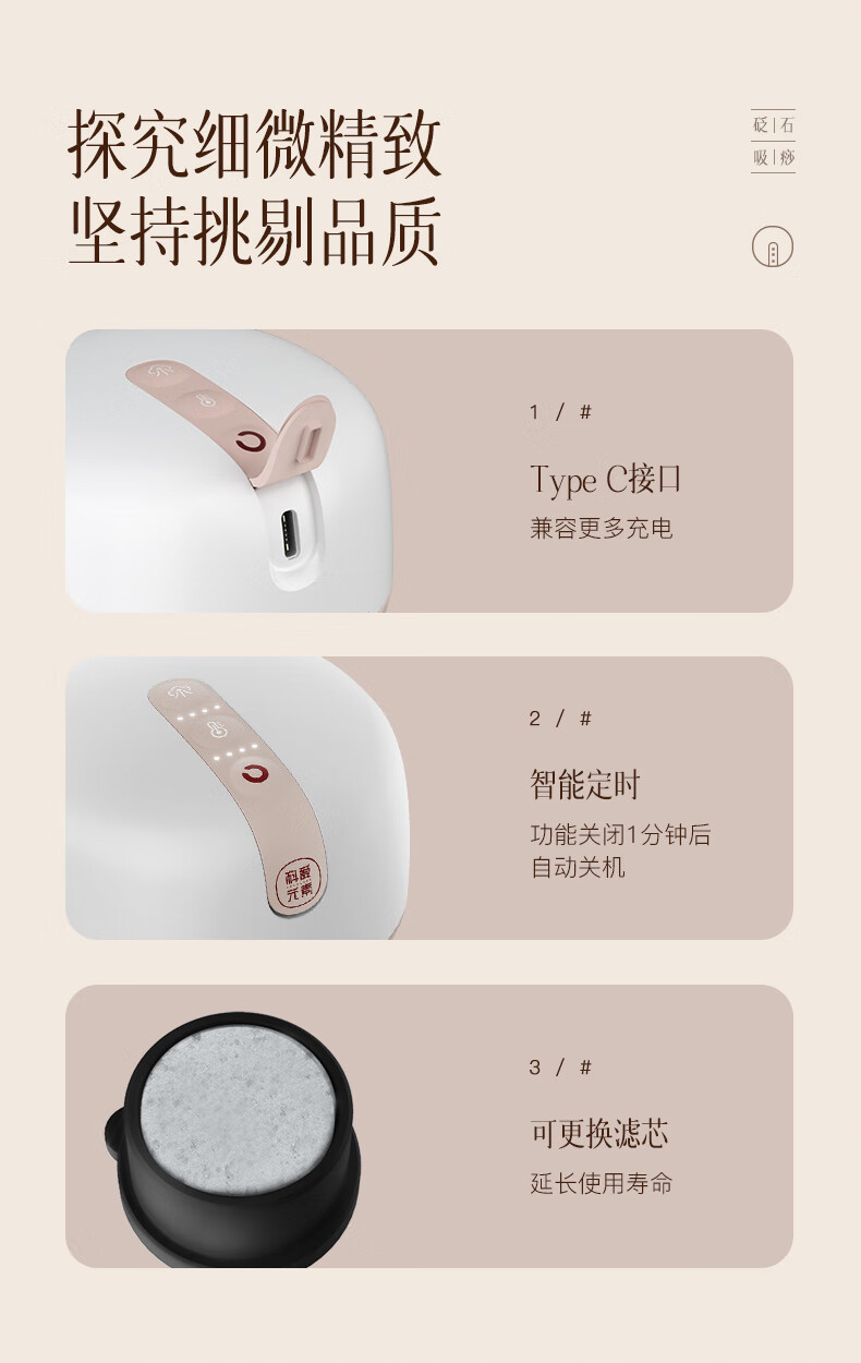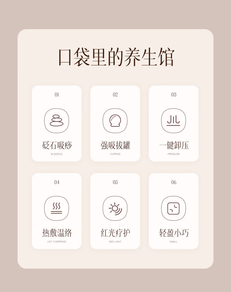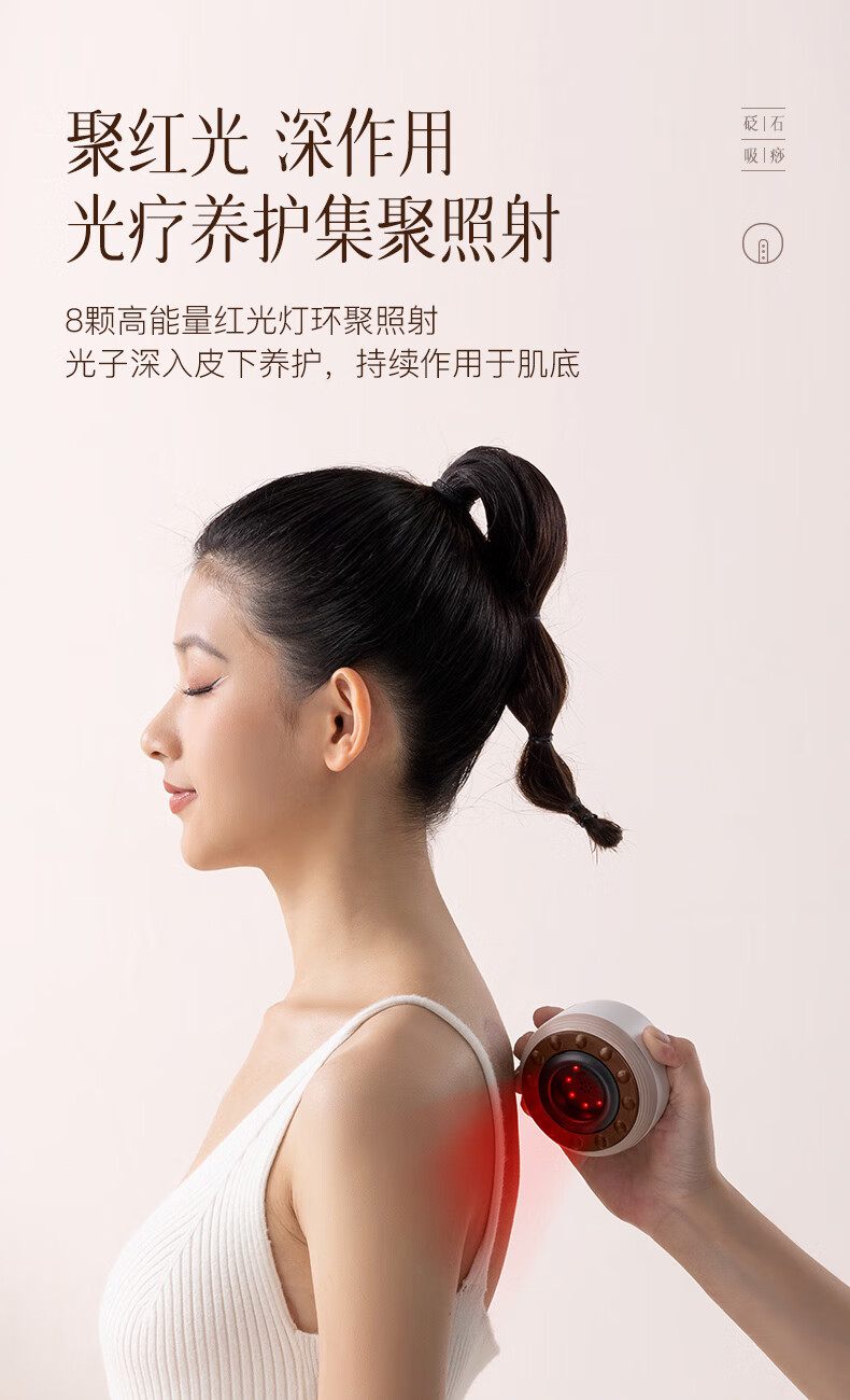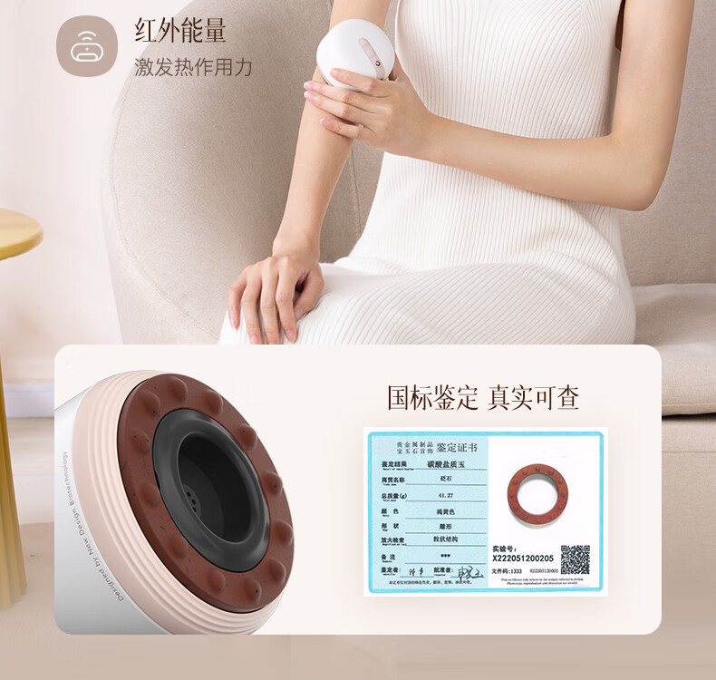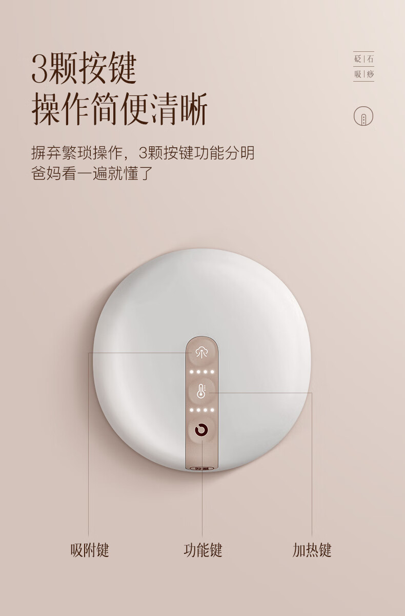 三档智能温控加上 43-48-53 温度热敷;壳体采用纯ABS树脂,提倡环保,表面不做喷涂处理;一档震动,快速刺激局部按摩区域