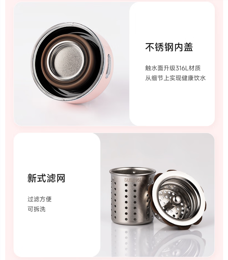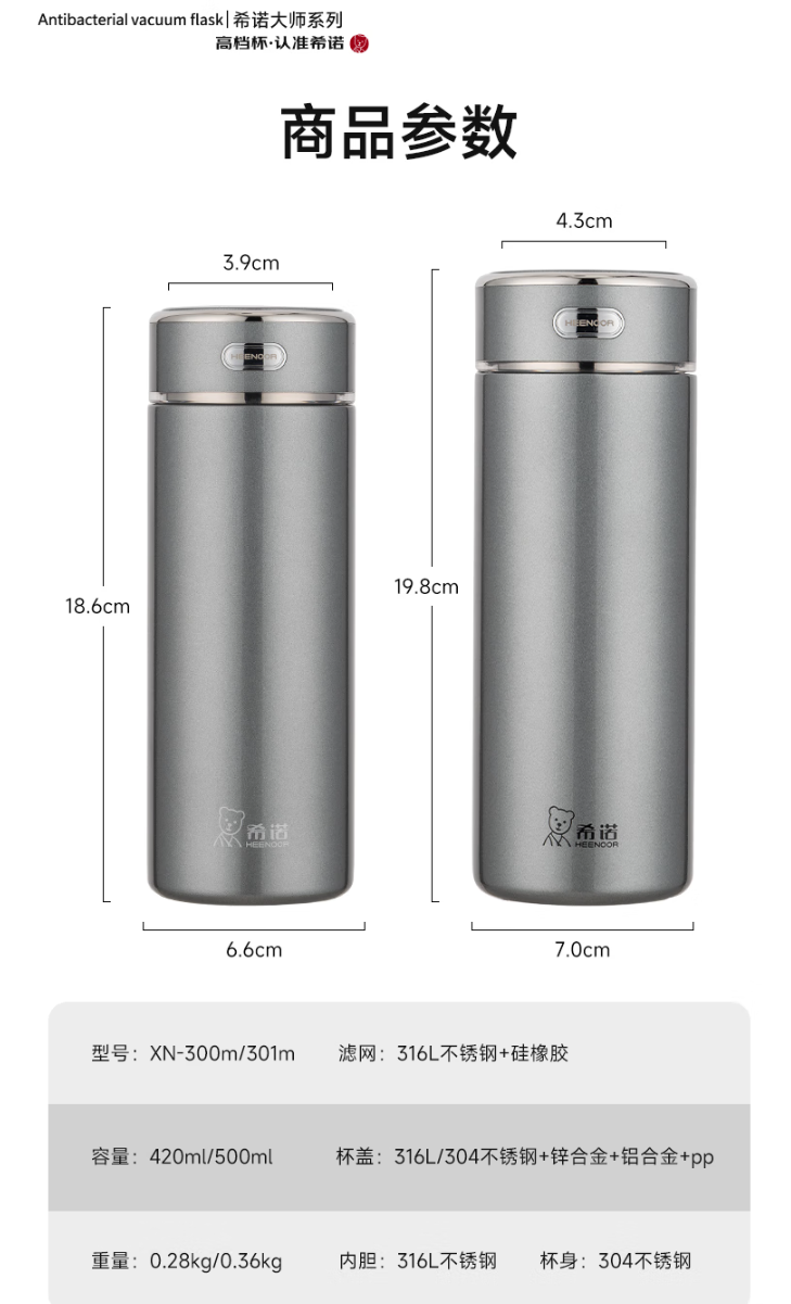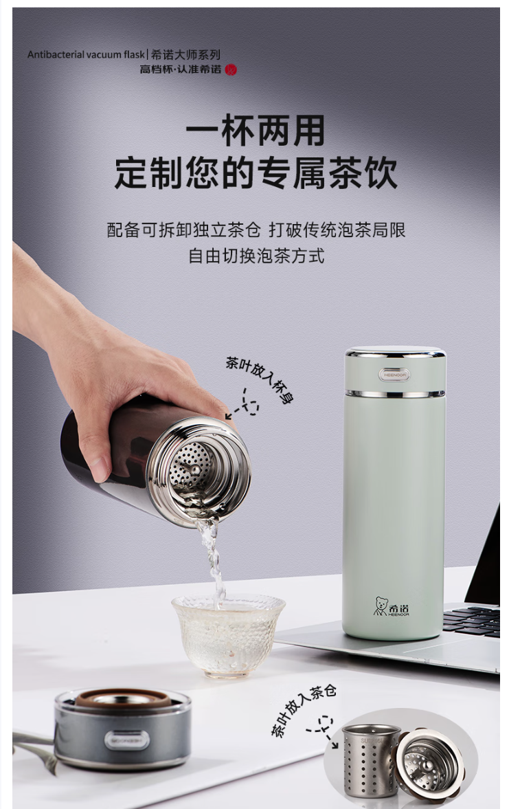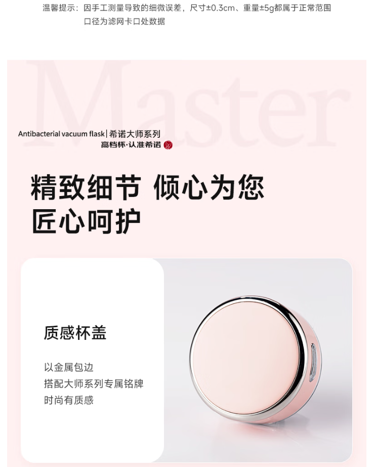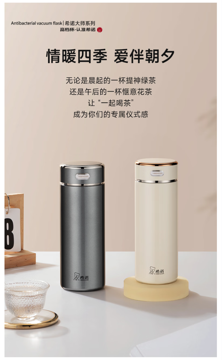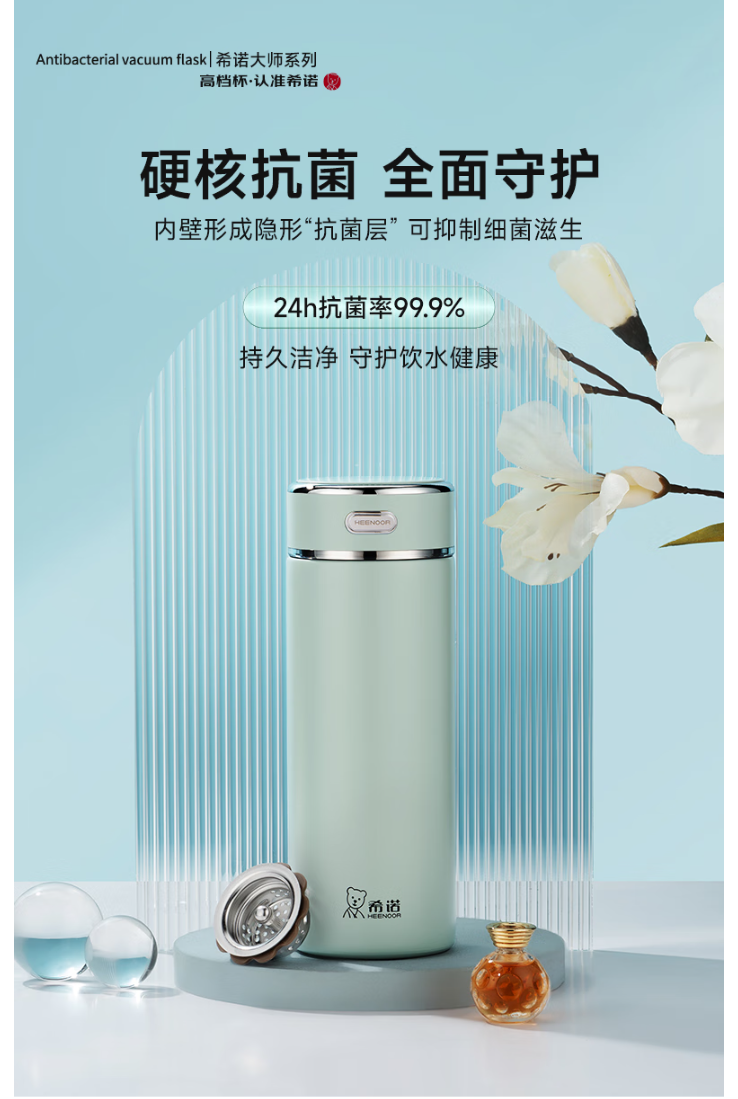大师款情侣抗菌保温杯,24H抗菌率99.9%;硬核抗菌全面守护,持久洁净,守护饮水健康;甄选316L不锈钢材质,耐腐蚀,铸就大师级卓越品质