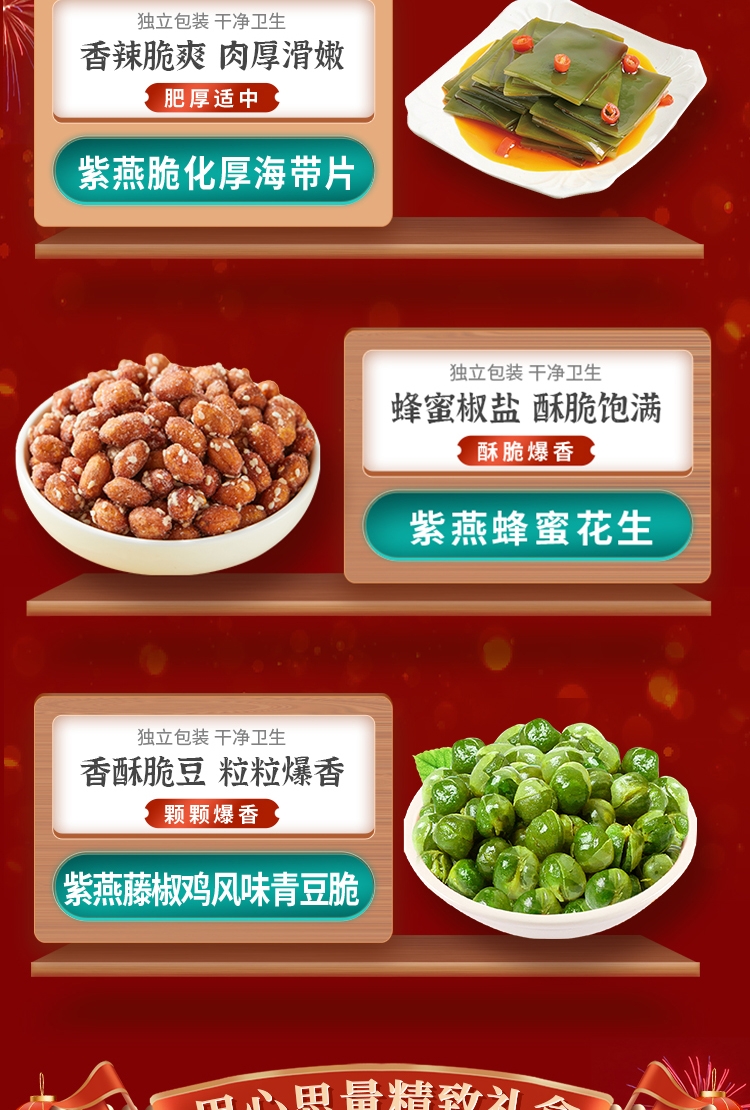 放肆嗨吃 多味零食 甄选心意 尽享好礼;精美礼盒 送礼有面;美味多样 性价比高