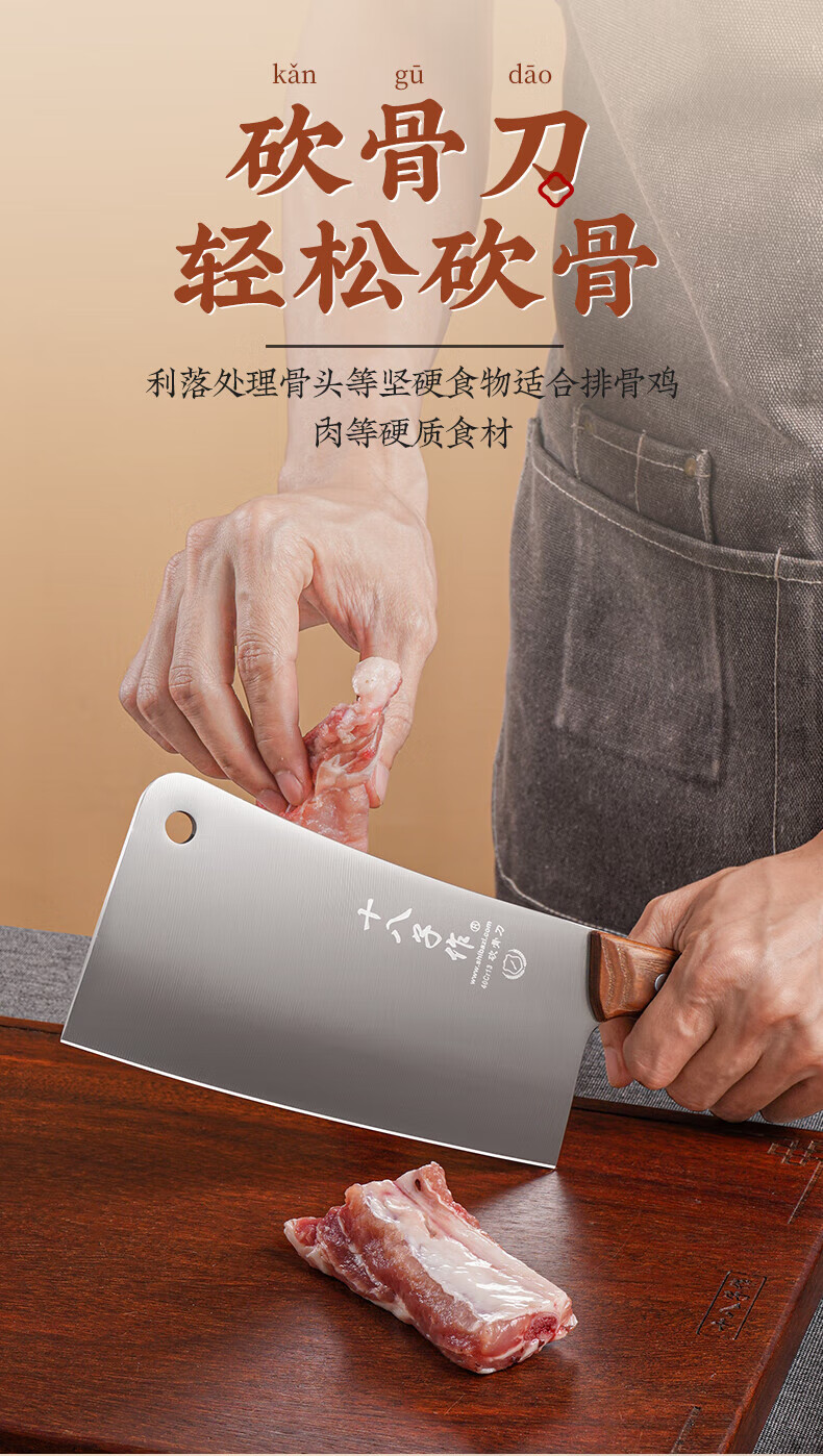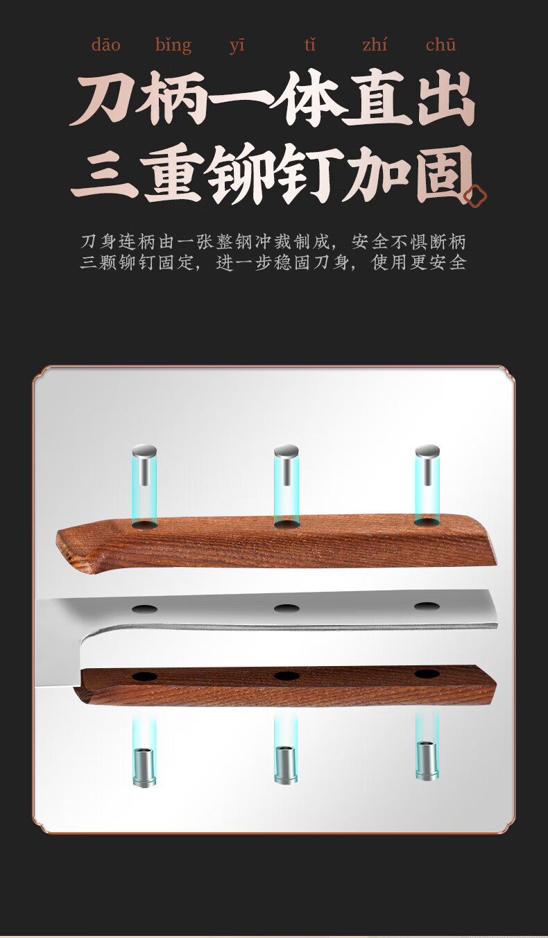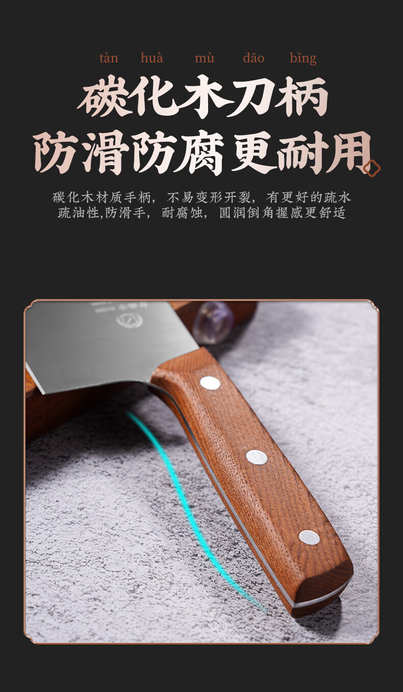 湿式V型开刃;碳化木手柄;锋利耐用,砍骨利落