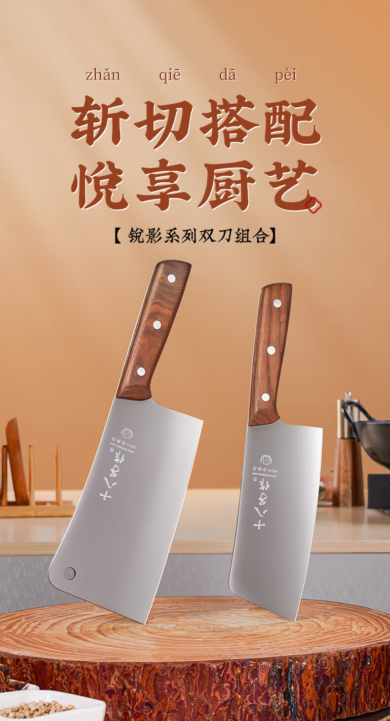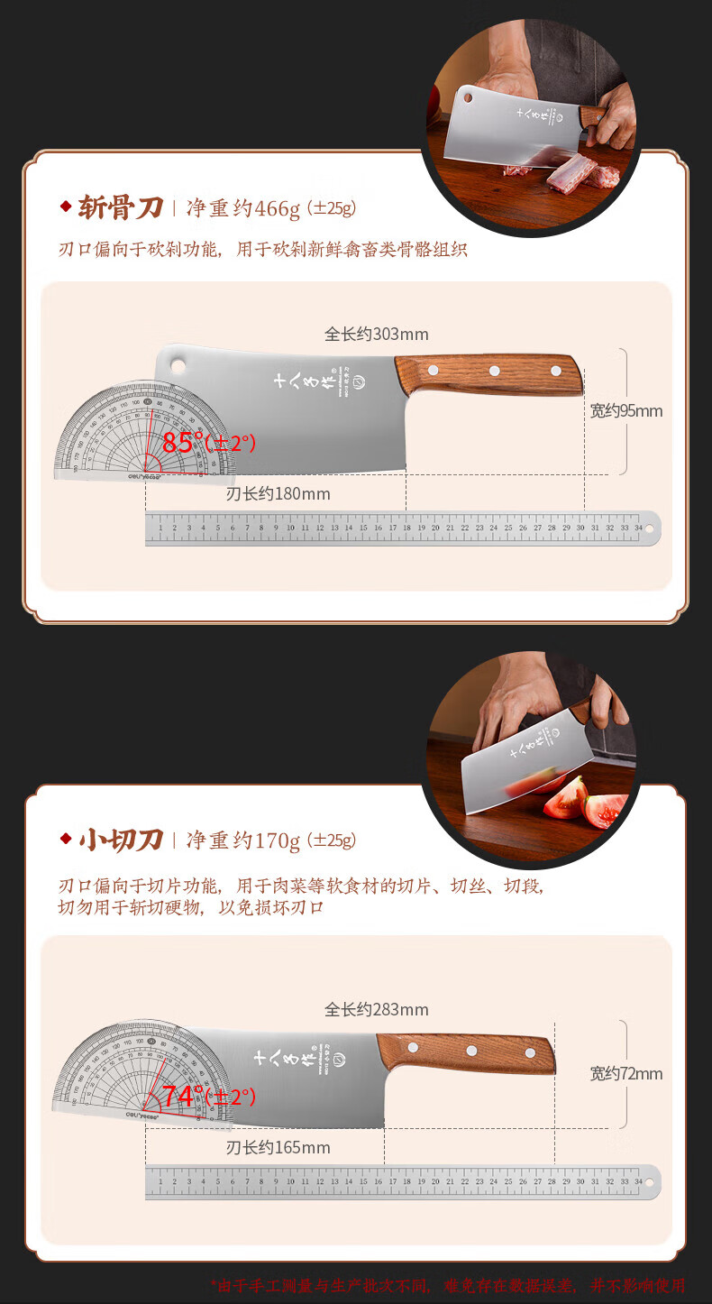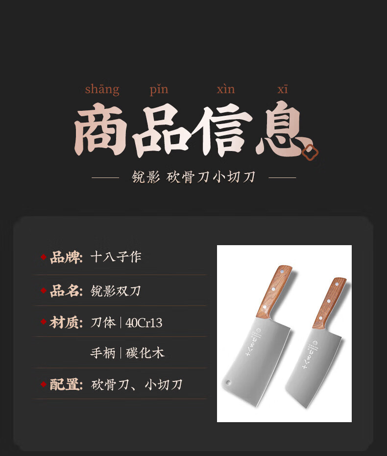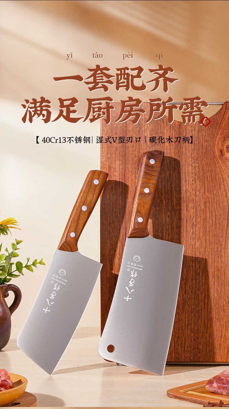 湿式V型开刃;碳化木手柄;锋利耐用,砍骨利落