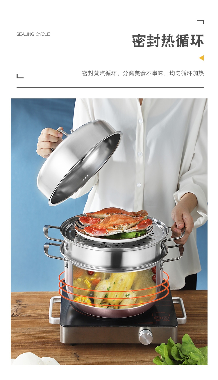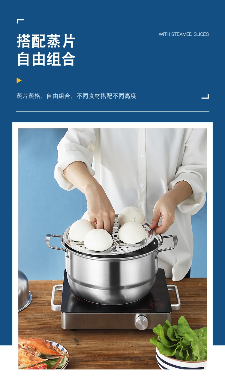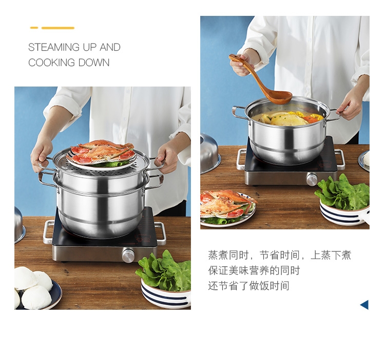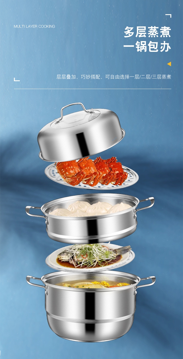 采用国际标准不锈钢板材精工制作,持久耐用;蒸格可自由拆卸,一锅多用;兼容多种炉具