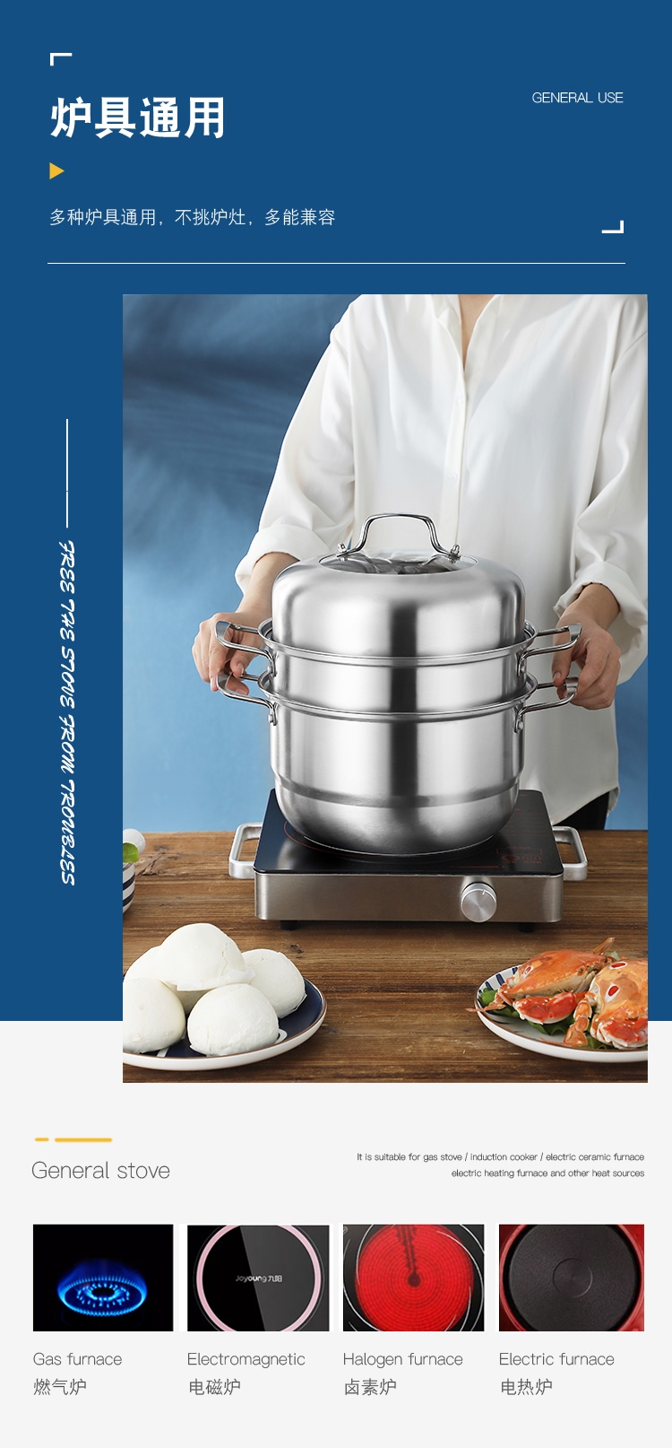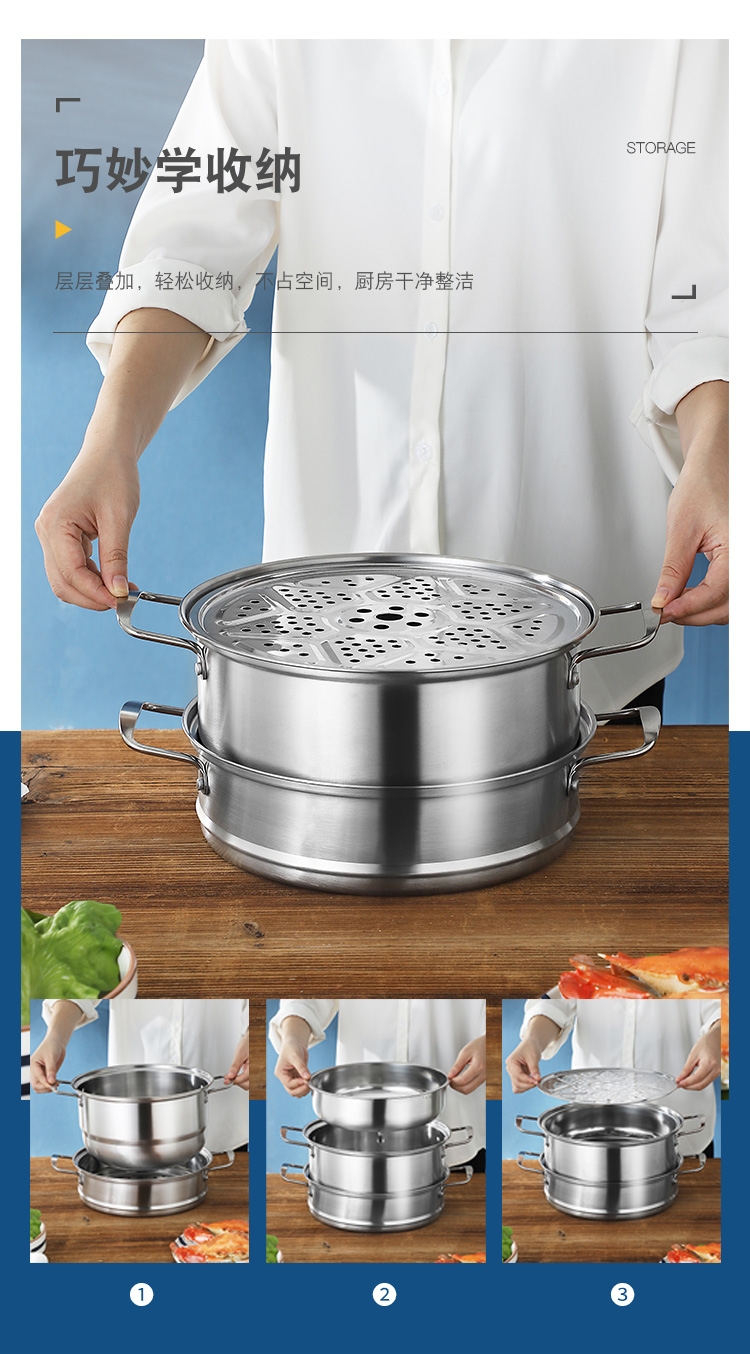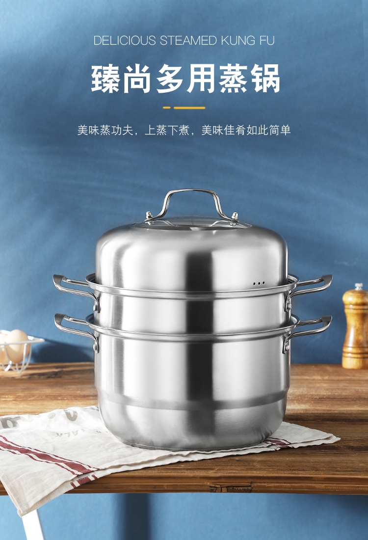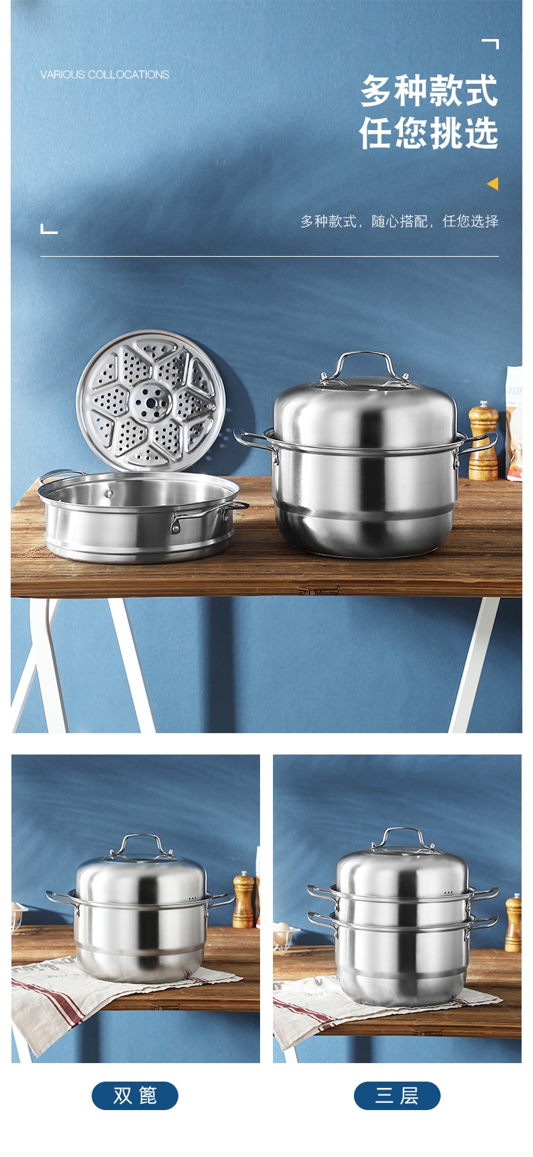 采用国际标准不锈钢板材精工制作,持久耐用;蒸格可自由拆卸,一锅多用;兼容多种炉具