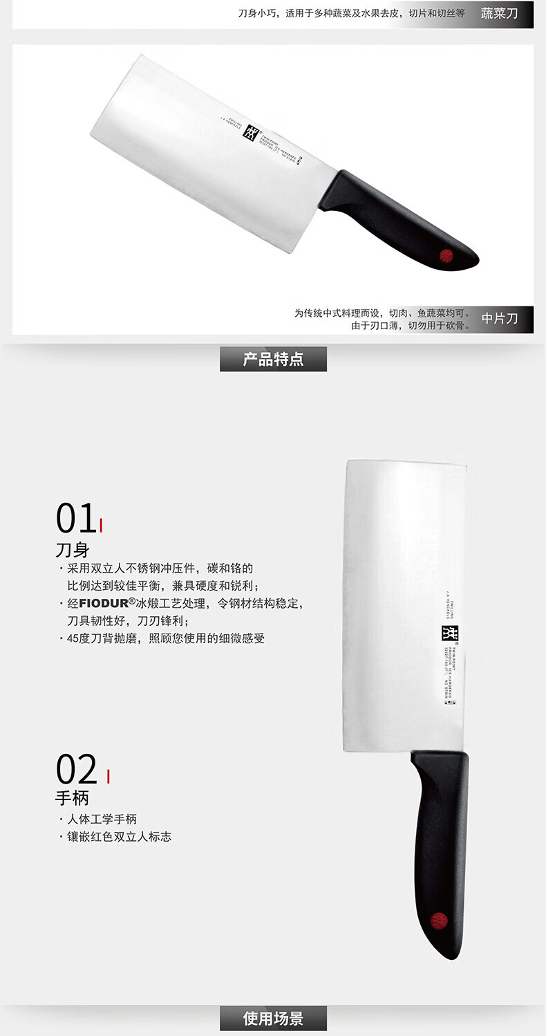 刀面经FRIODUR冰煅工艺处理,令钢材结构稳定;45°刀背磨抛,安心舒适,切配锋利,刀面不锈钢本色;人体工学手柄,握感舒适,使用得心应手
