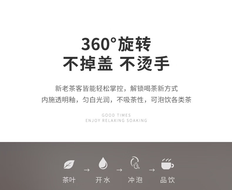 告别烫手,解锁喝茶新方式;360旋转,不掉盖,不烫手;大吉大利,送礼寓意好
