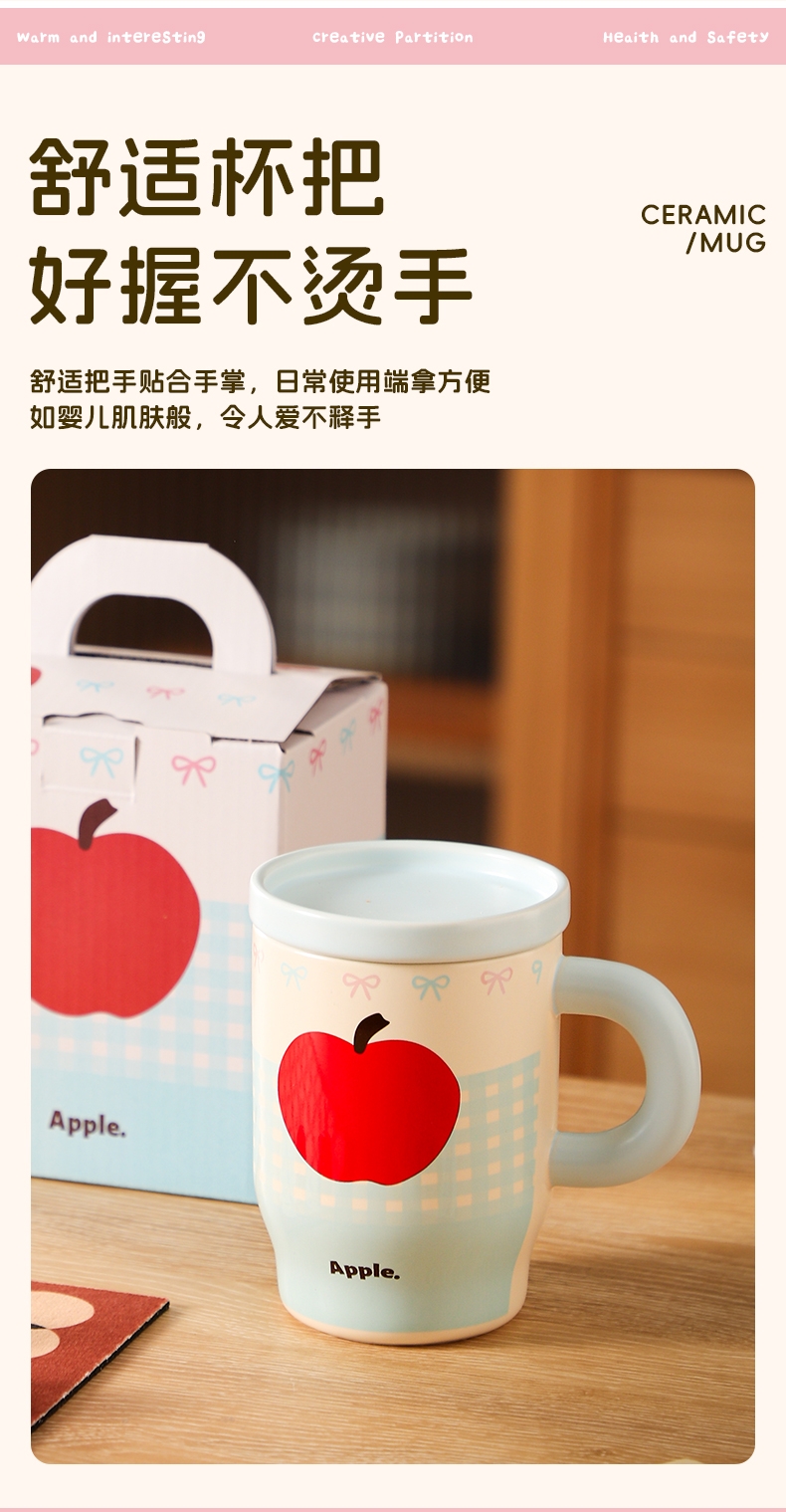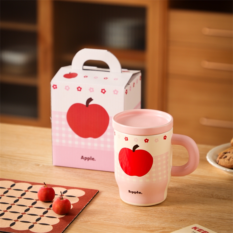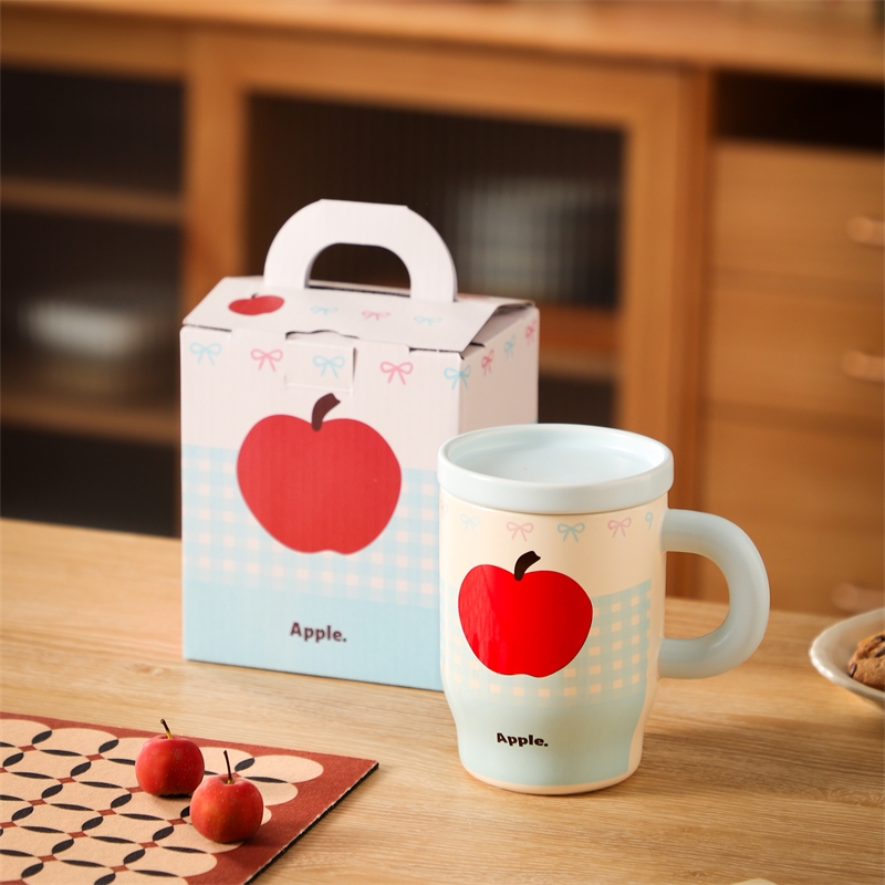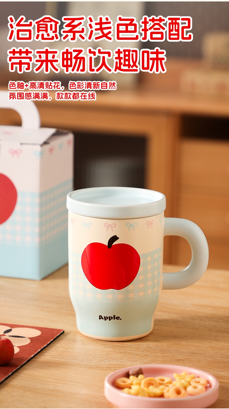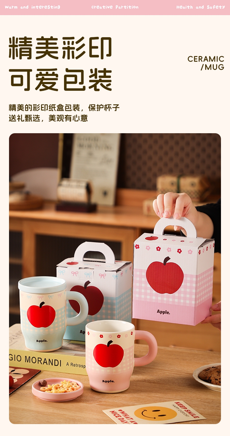 简约风格、红苹果图案;软乎奶萌浅色搭配,盖子可当零食碟;专属彩盒