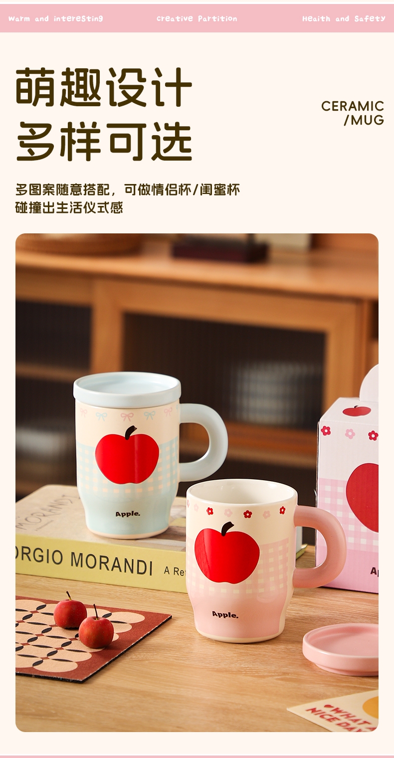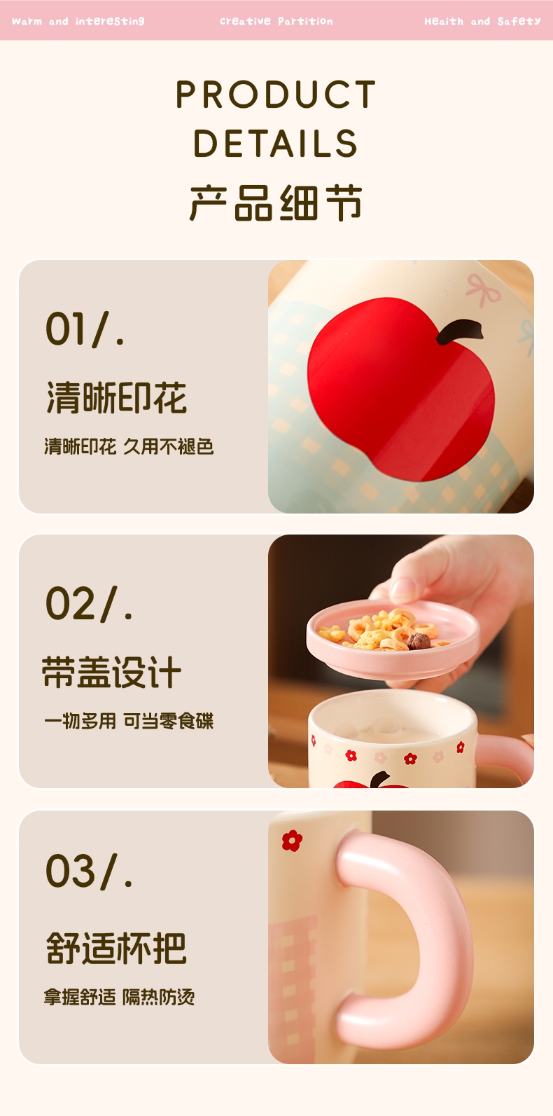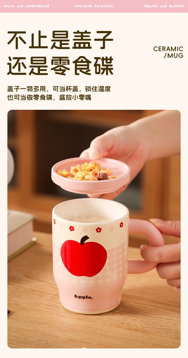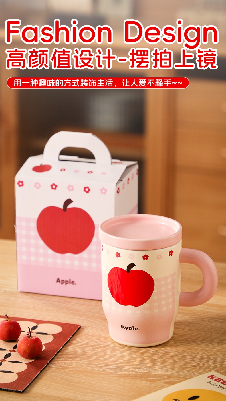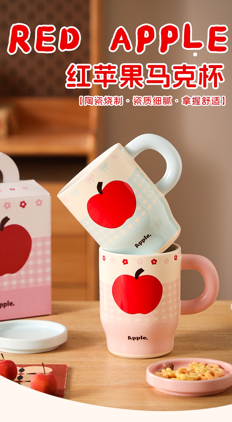 简约风格、红苹果图案;软乎奶萌浅色搭配,盖子可当零食碟;专属彩盒