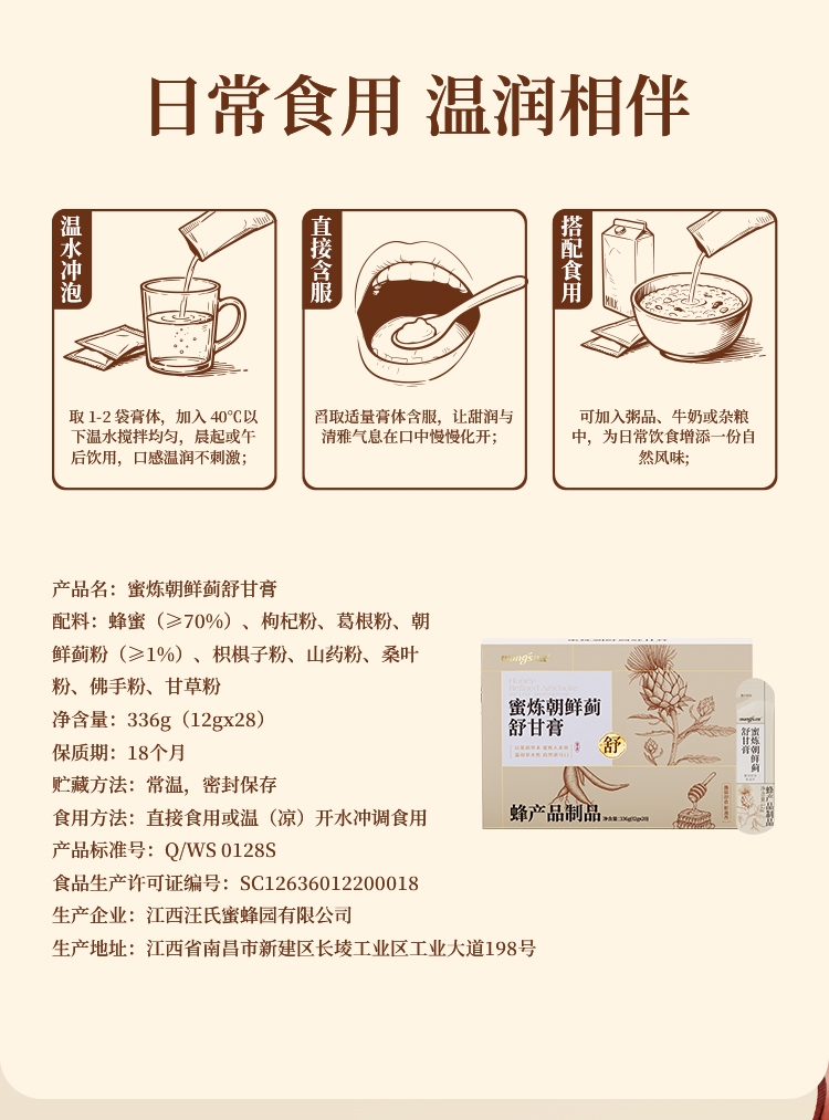 蜂蜜蜜炼朝鲜蓟舒甘膏;送父母送爱人礼品;养生膏滋补营养品