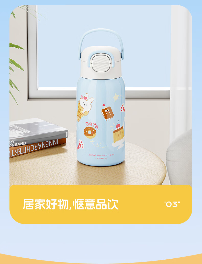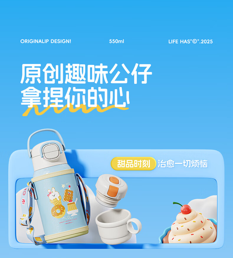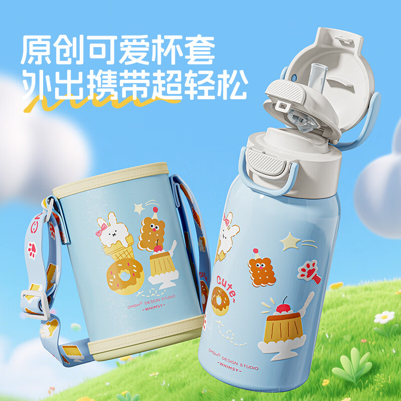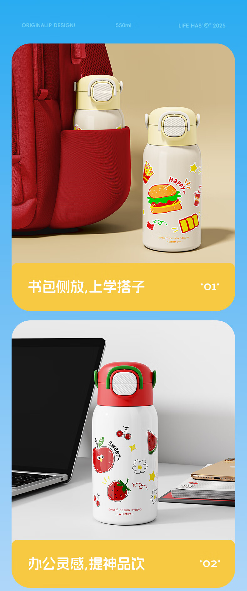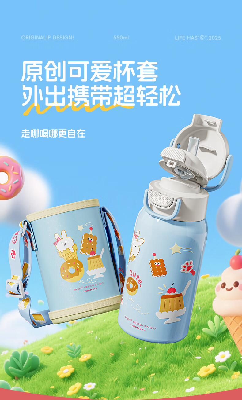 甄选316钢材 耐腐蚀更保温;碗盖&双饮盖 饮水多花样;可爱甜美杯套 防摔保护