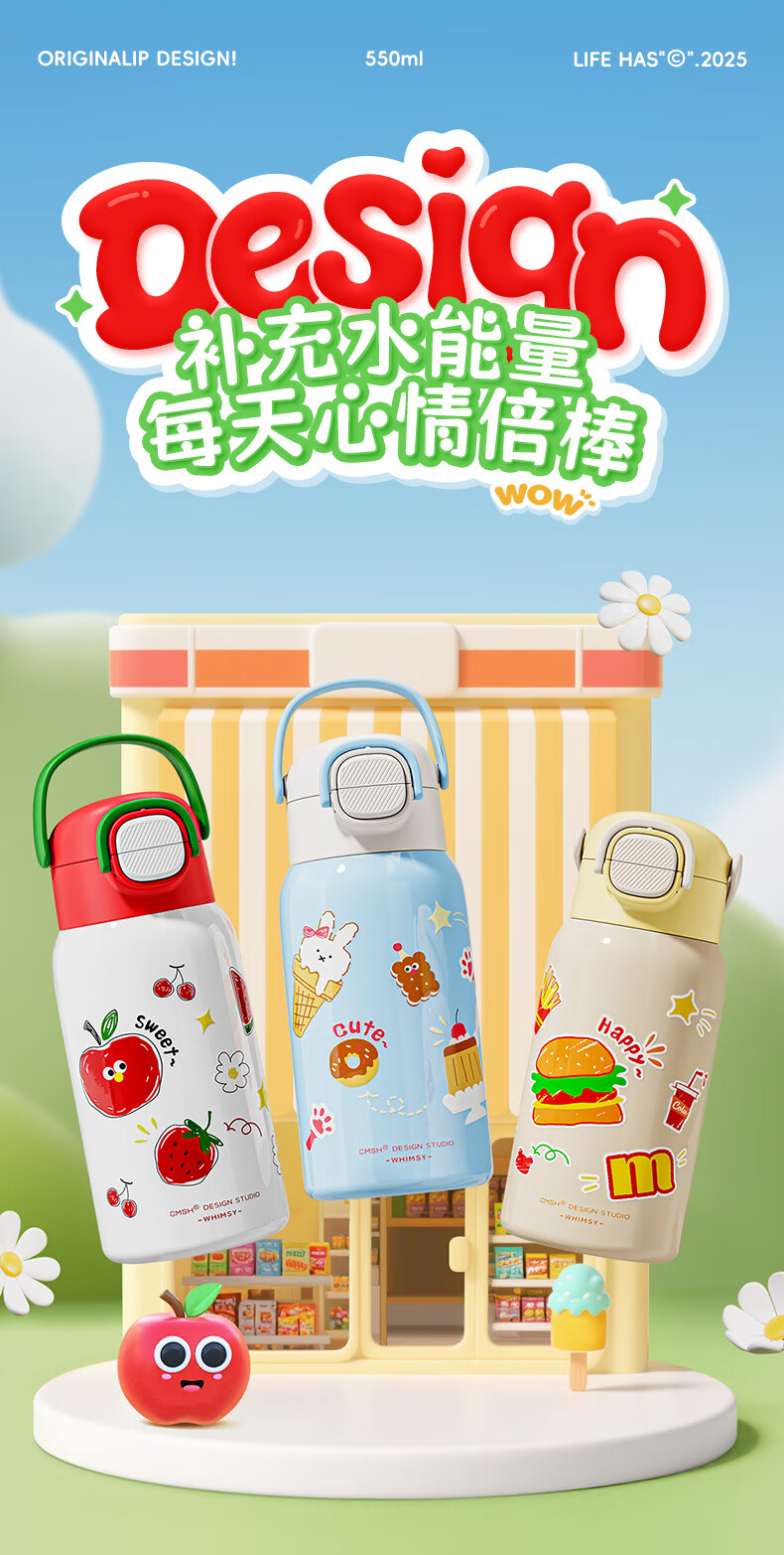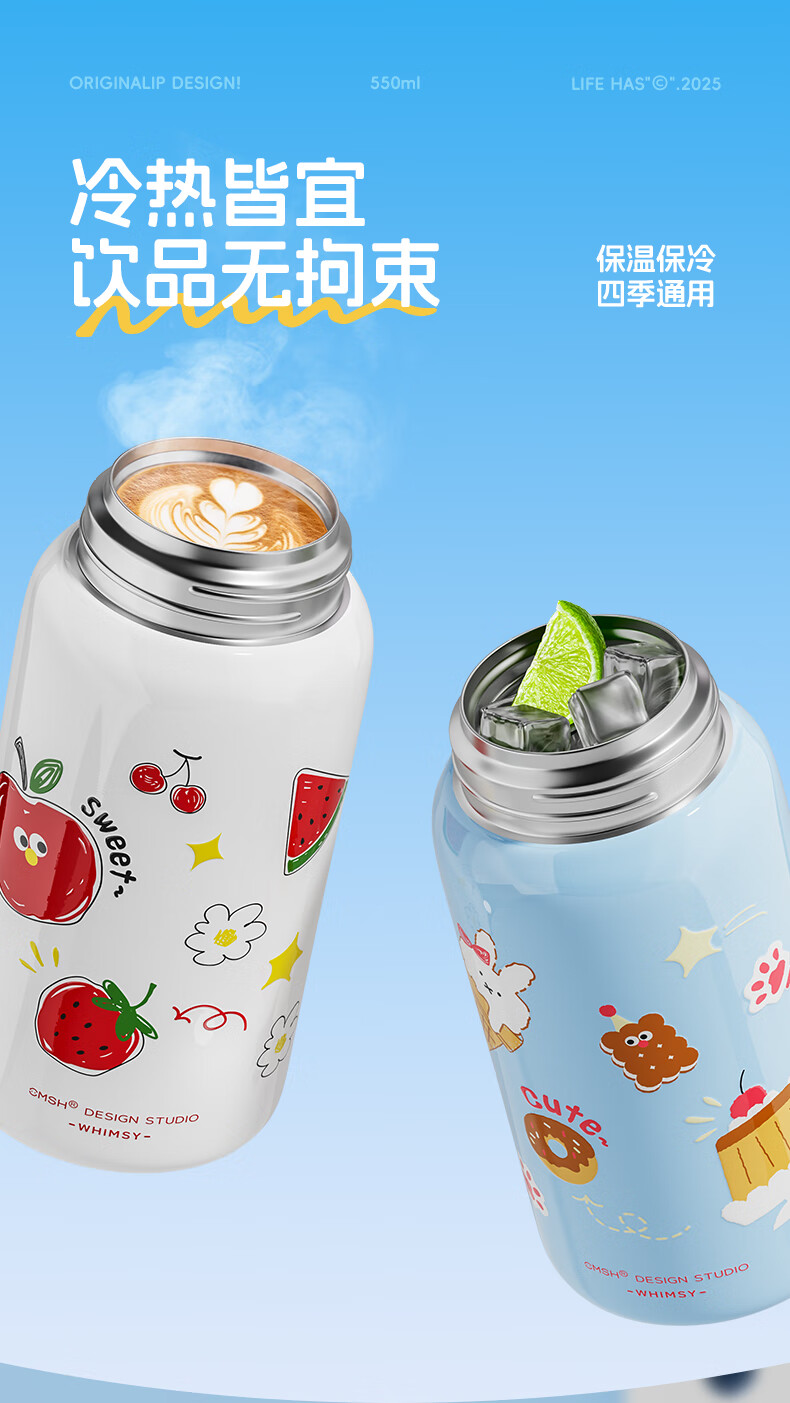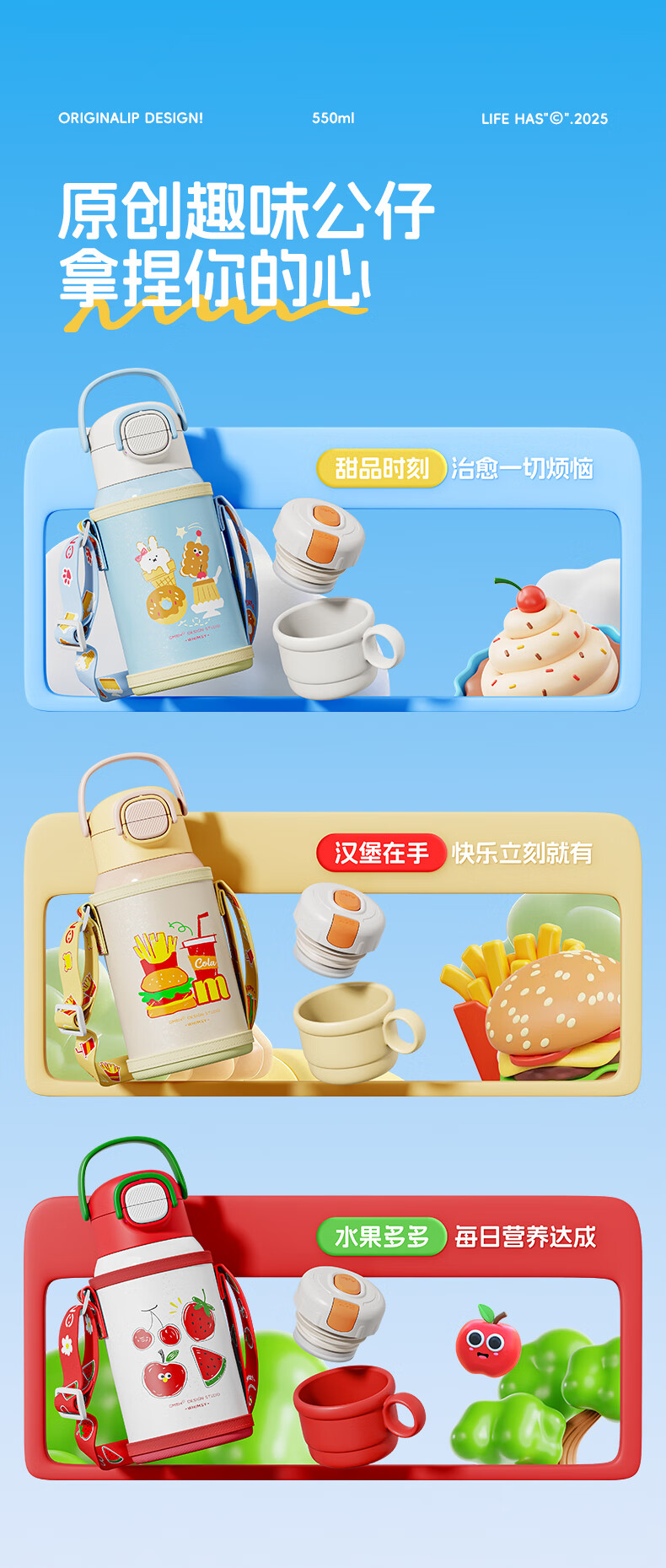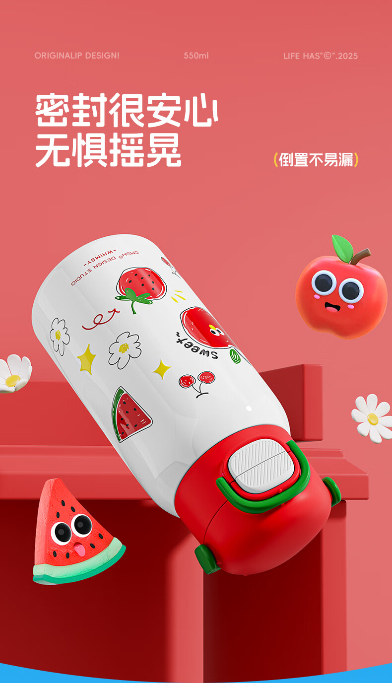 甄选316钢材 耐腐蚀更保温;碗盖&双饮盖 饮水多花样;可爱甜美杯套 防摔保护