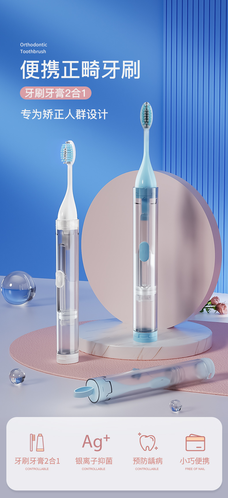 便携可折叠;牙膏牙刷一体式;正畸人群