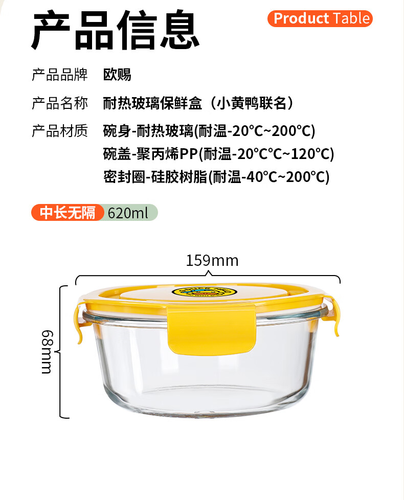 欧赐 联名款小黄鸭耐热保鲜盒B002-2
