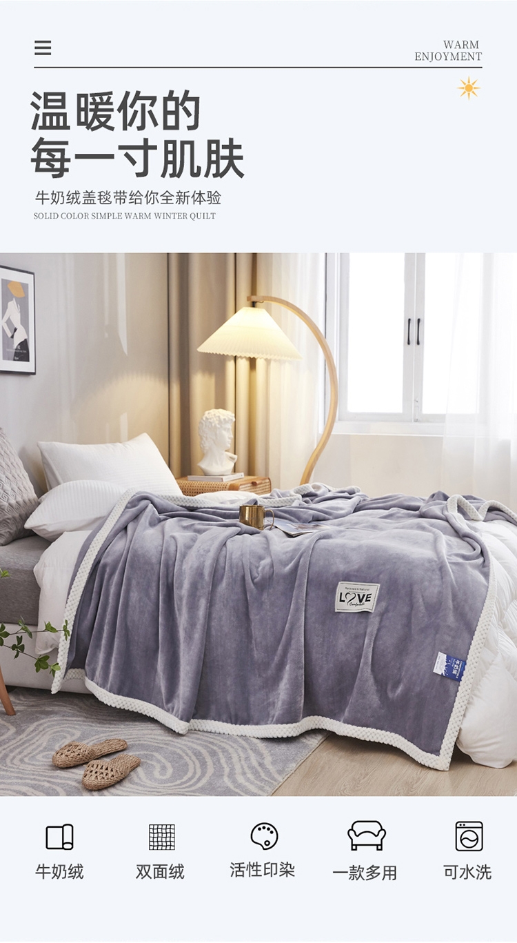 不期而遇温暖好时光 纯色简约多功能盖毯;绒面料柔软舒适如云般柔软轻盈丝滑如阳光般温暖!;温暖你的每一寸肌肤 牛奶绒盖毯带给你全新体验