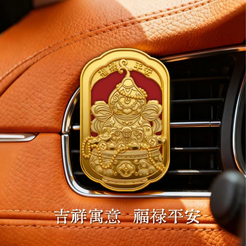 葫芦+聚宝盆,寓意福禄双收招财纳福;高光镀金材质,轻奢质感适配豪车内饰;磁吸香片+卡扣风口夹,装卸稳固又方便