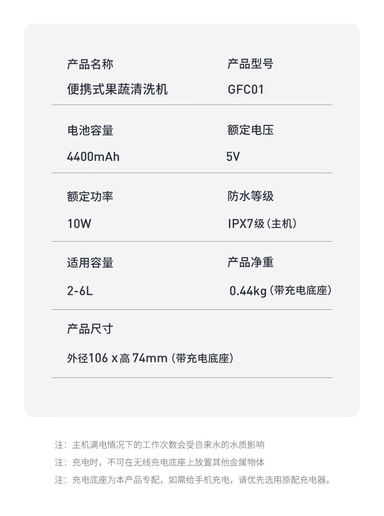 配置清单:果蔬清洗机GFC01 便携式无线充电长续航使用方便*1