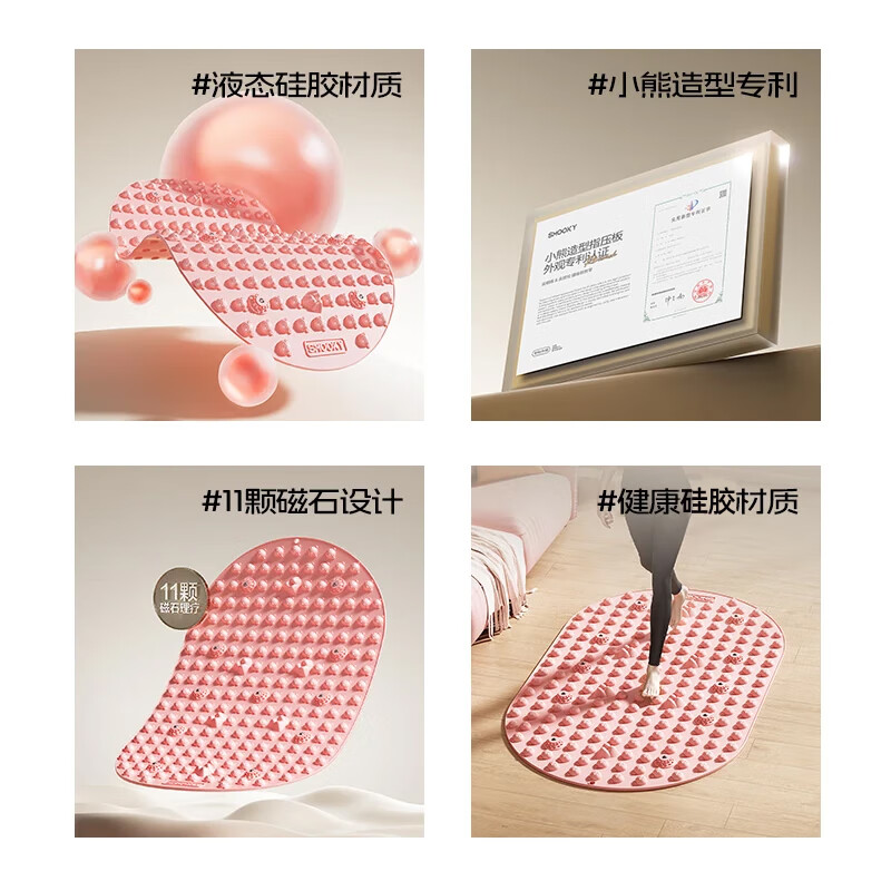立体浮点,紧密贴合脚底。;柔软弹性按摩点,酸爽舒适;大尺寸设计,软弹硅胶材质,踩上去更舒适