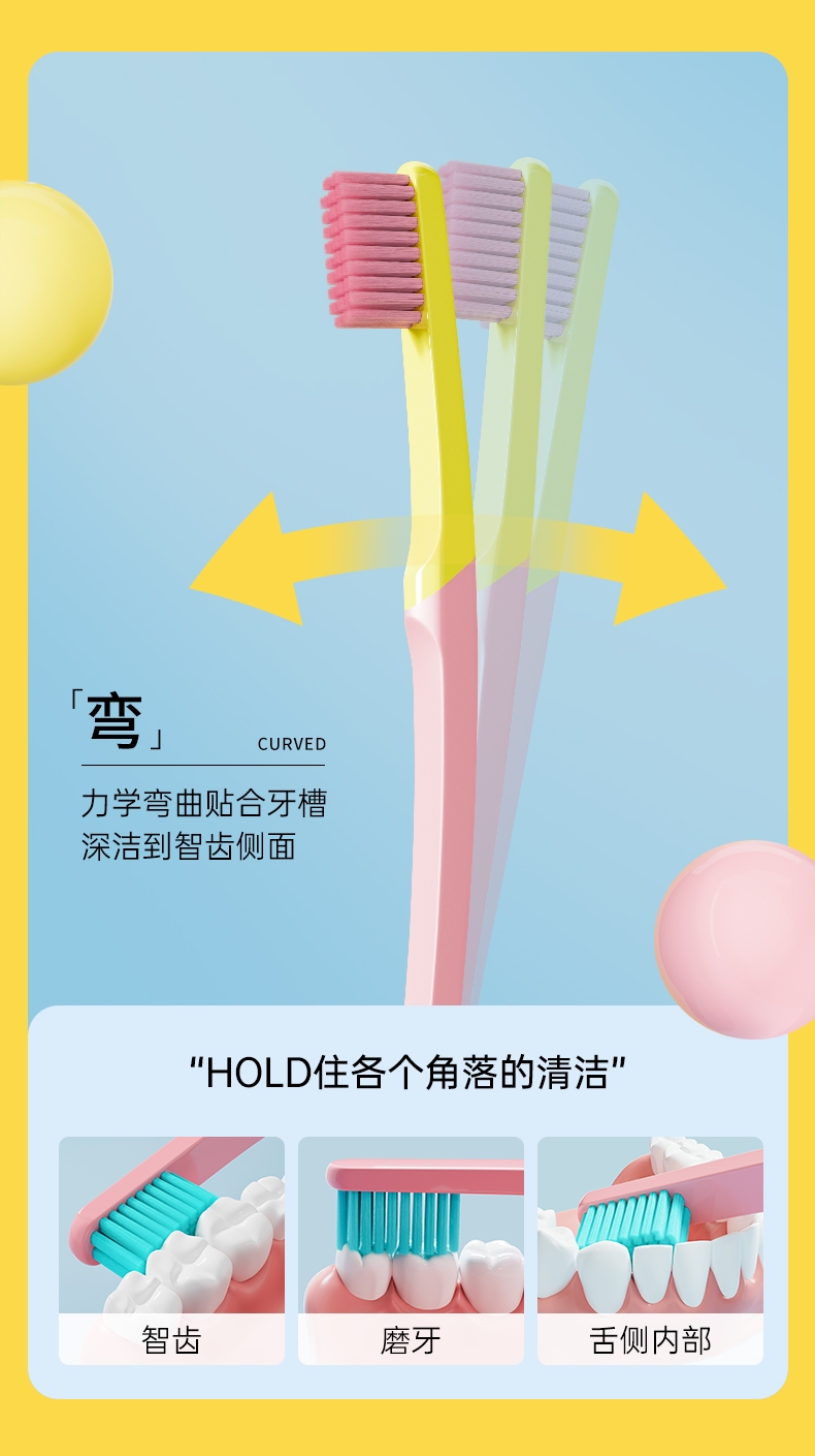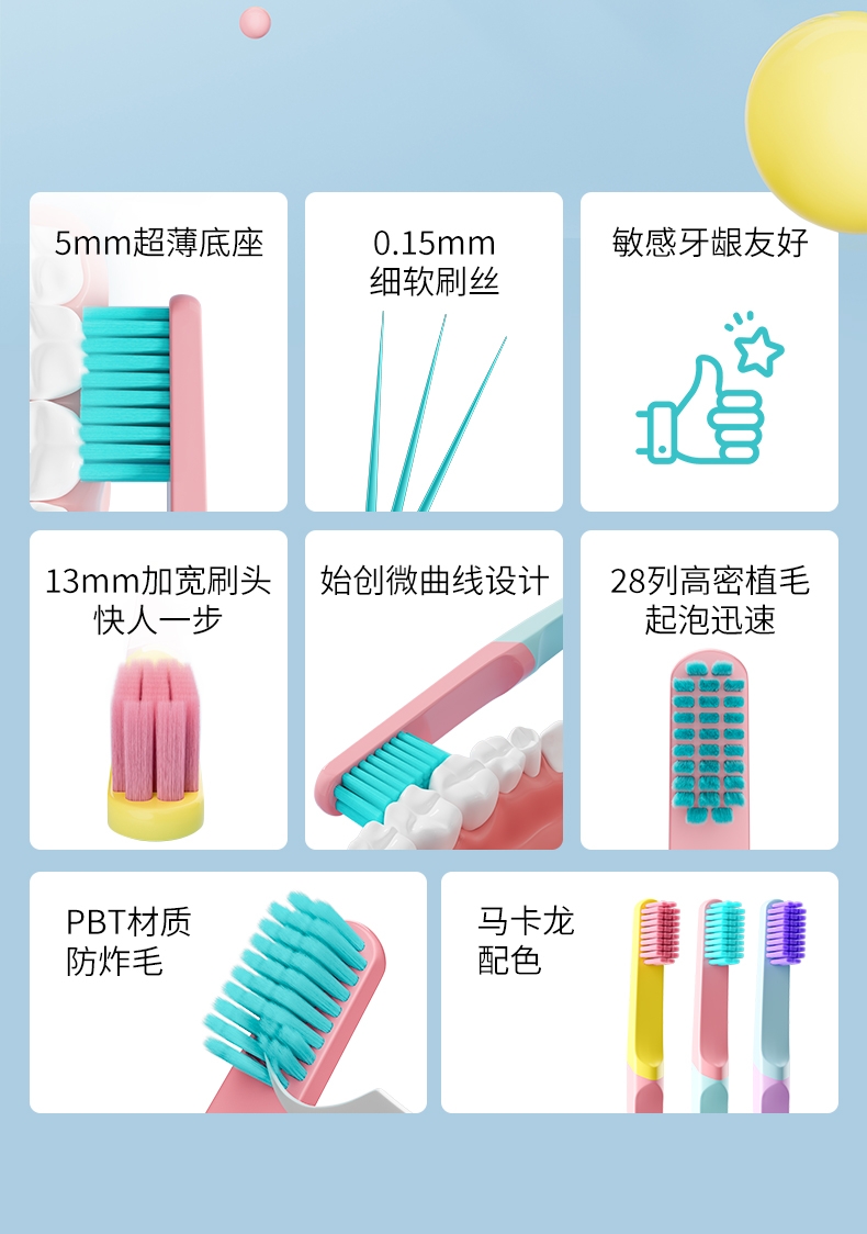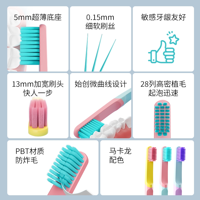 高弹软毛三支装牙刷;马卡龙三支装;多巴胺牙刷软毛超软超细成人