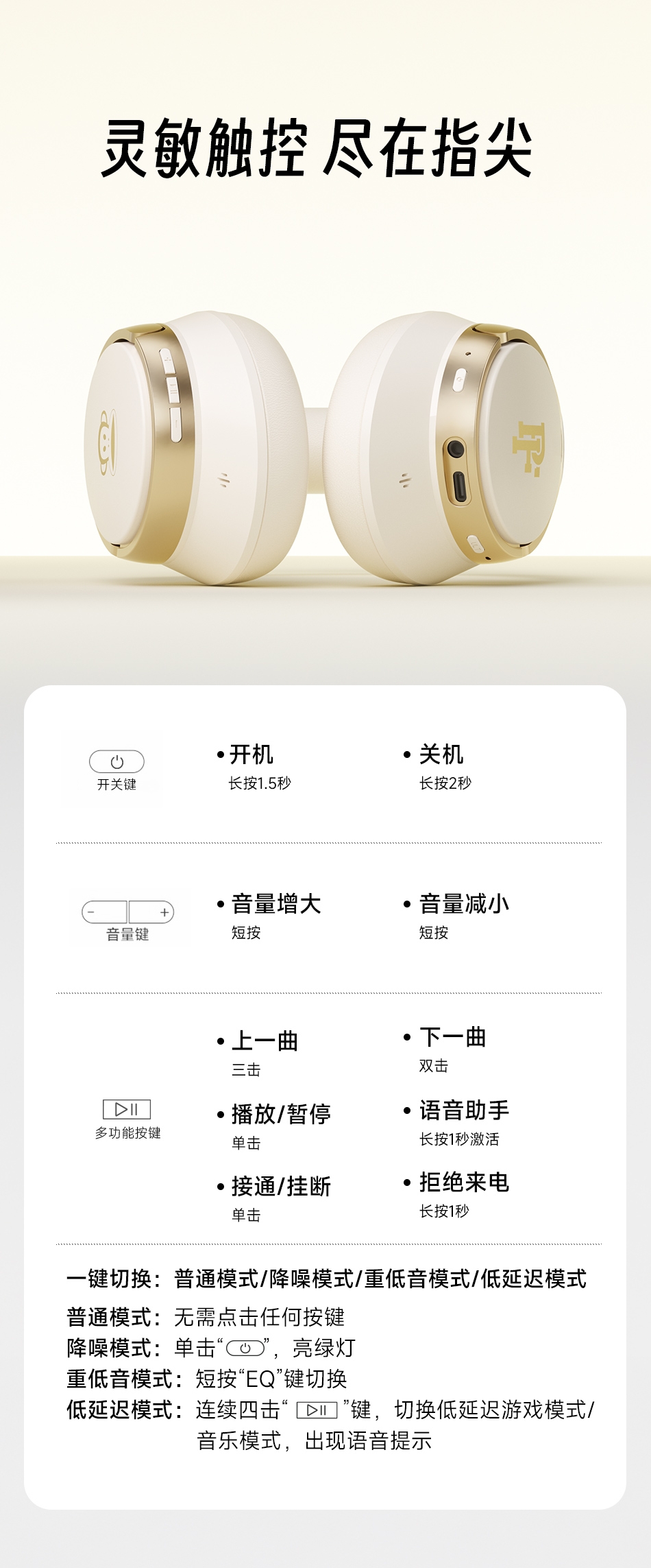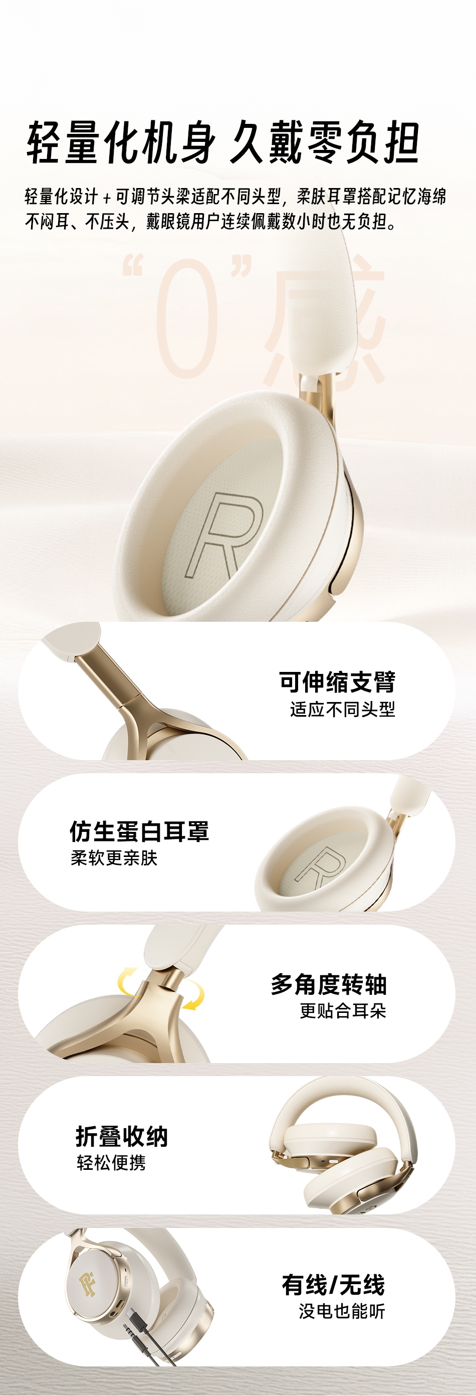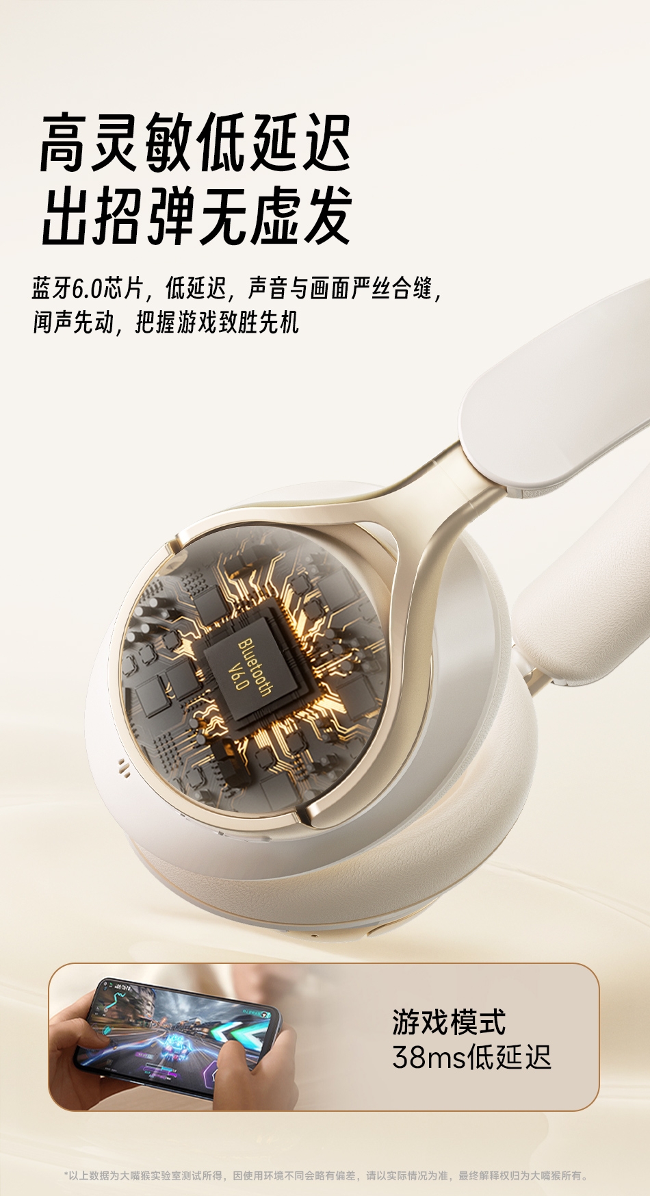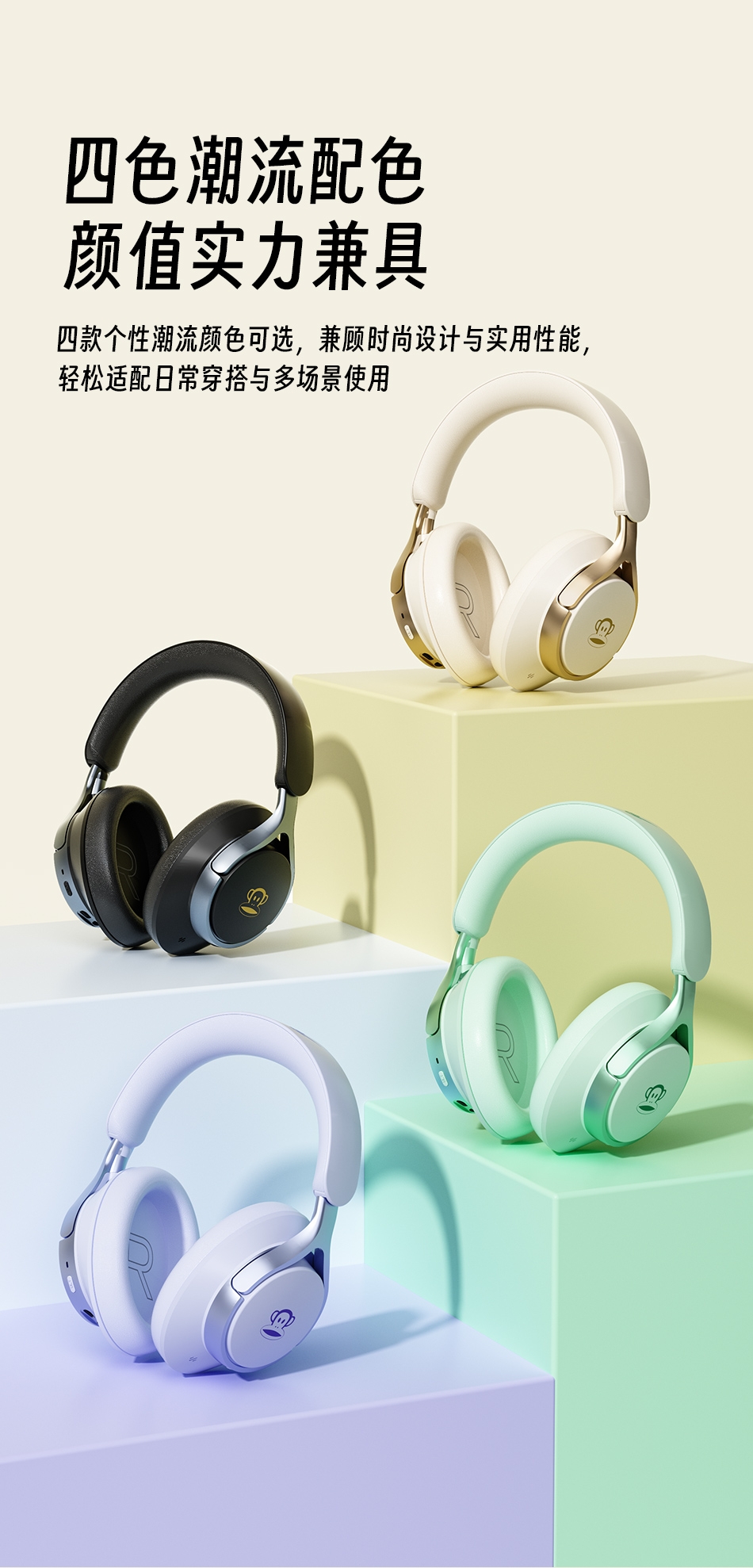 全新多巴胺多彩配色时尚设计,ANC主动降噪远离喧嚣;40MM大动圈驱动单元,体验低中高频解析细节更丰富;仿蛋白皮料+记忆海绵,零压超柔佩戴,聆听更舒适;全新蓝牙V6.0,ENC智能通话降噪,清晰沟通;支持音乐模式/游戏模式一键切换