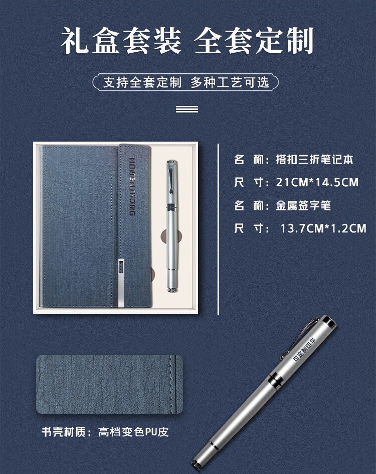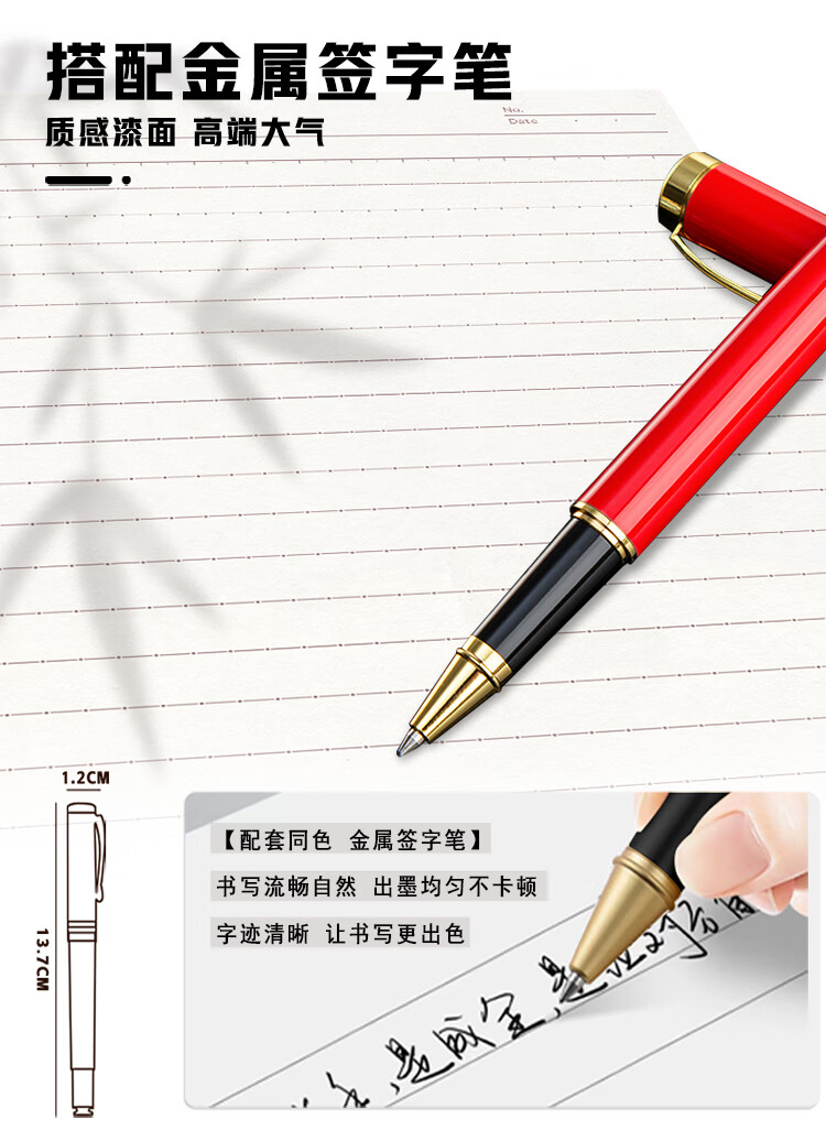 配置清单:三折商务本*1,金属签字笔*1,礼盒礼袋*1