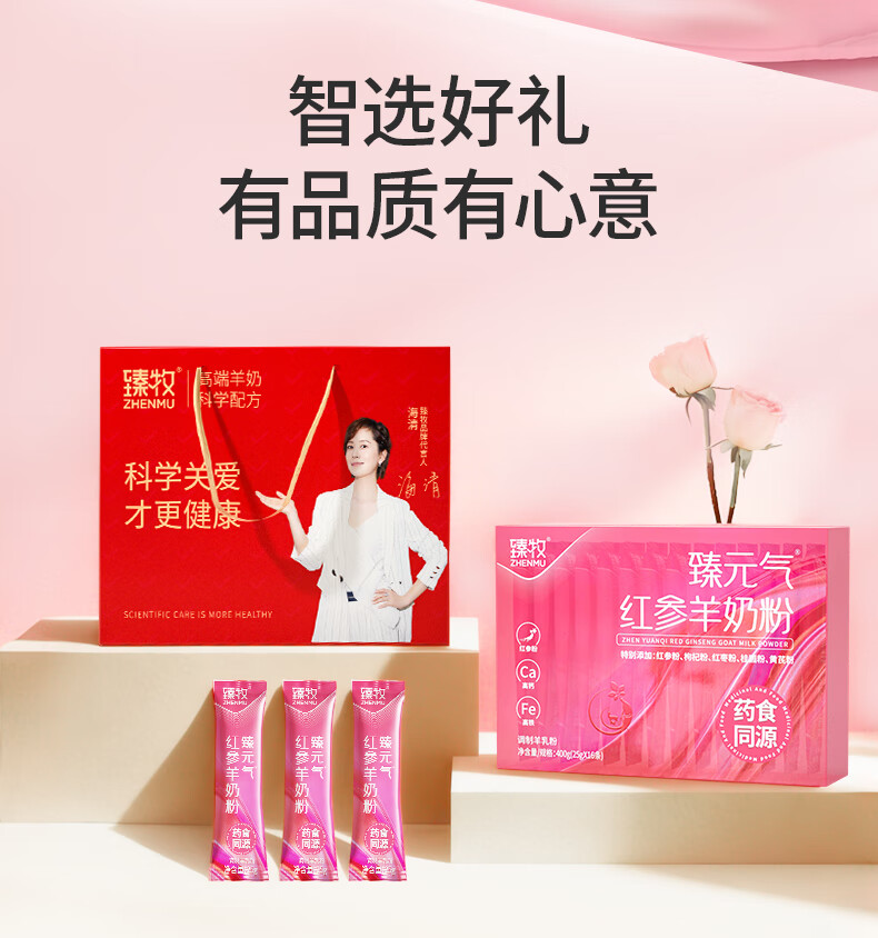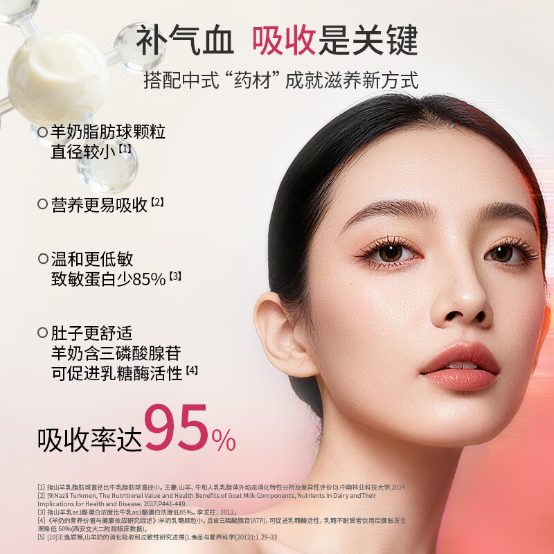 红参粉、枸杞粉、红枣粉、黄芪粉以及羊初乳调制而成,;.0蔗糖0香精0激素0速溶剂0添加剂0防腐剂;专利脱膻技术,口感醇香愉悦;原生高钙,超国标4倍高钙,每100g含钙1020m