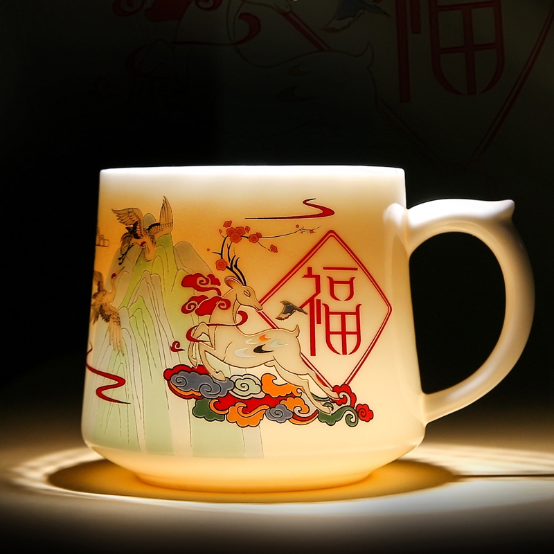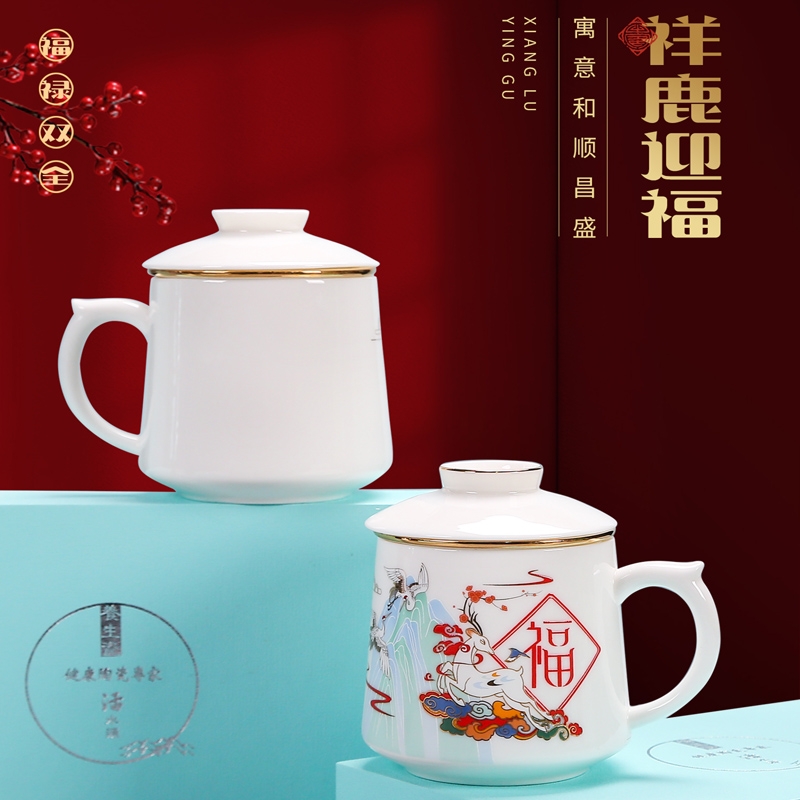 福鹿同行羊脂玉瓷办公杯