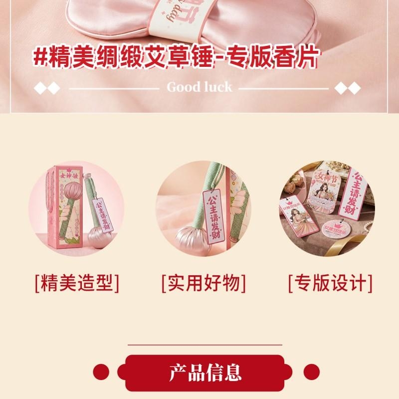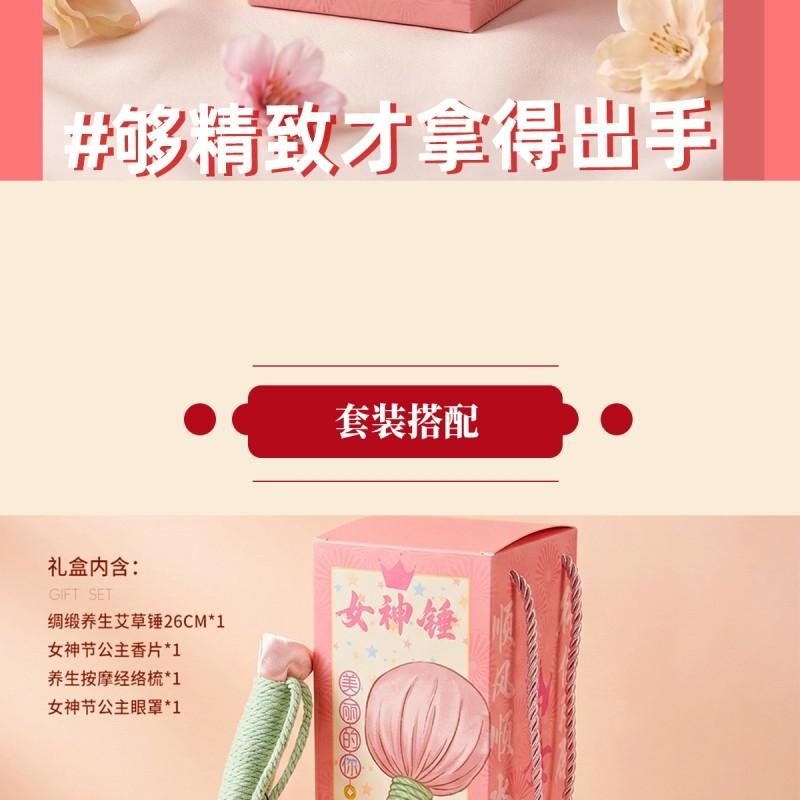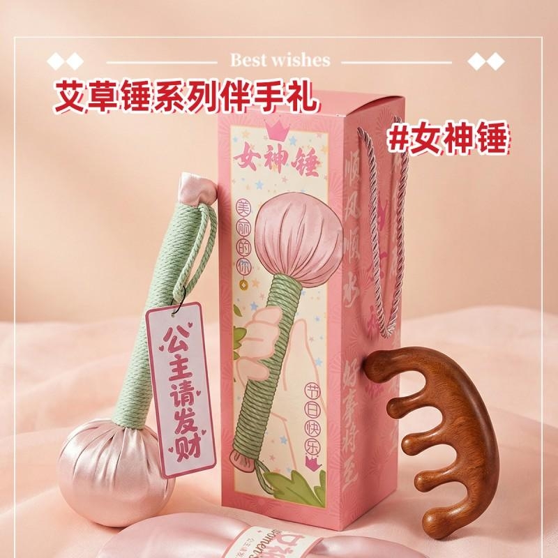 组合:按摩梳*1、女神节眼罩*1、女神节公主香片 *1、女神锤绸缎养生艾草锤26CM*1