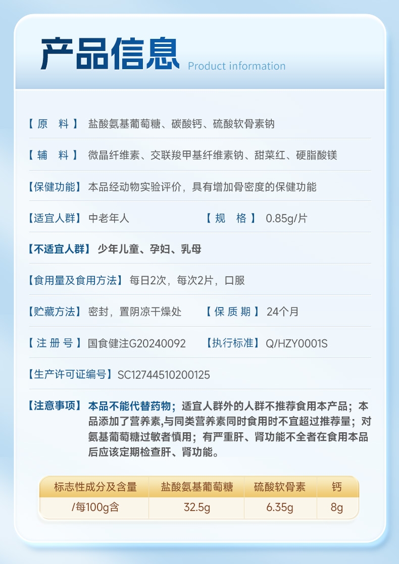 康恩贝 长兴牌氨糖软骨素钙片57.8g