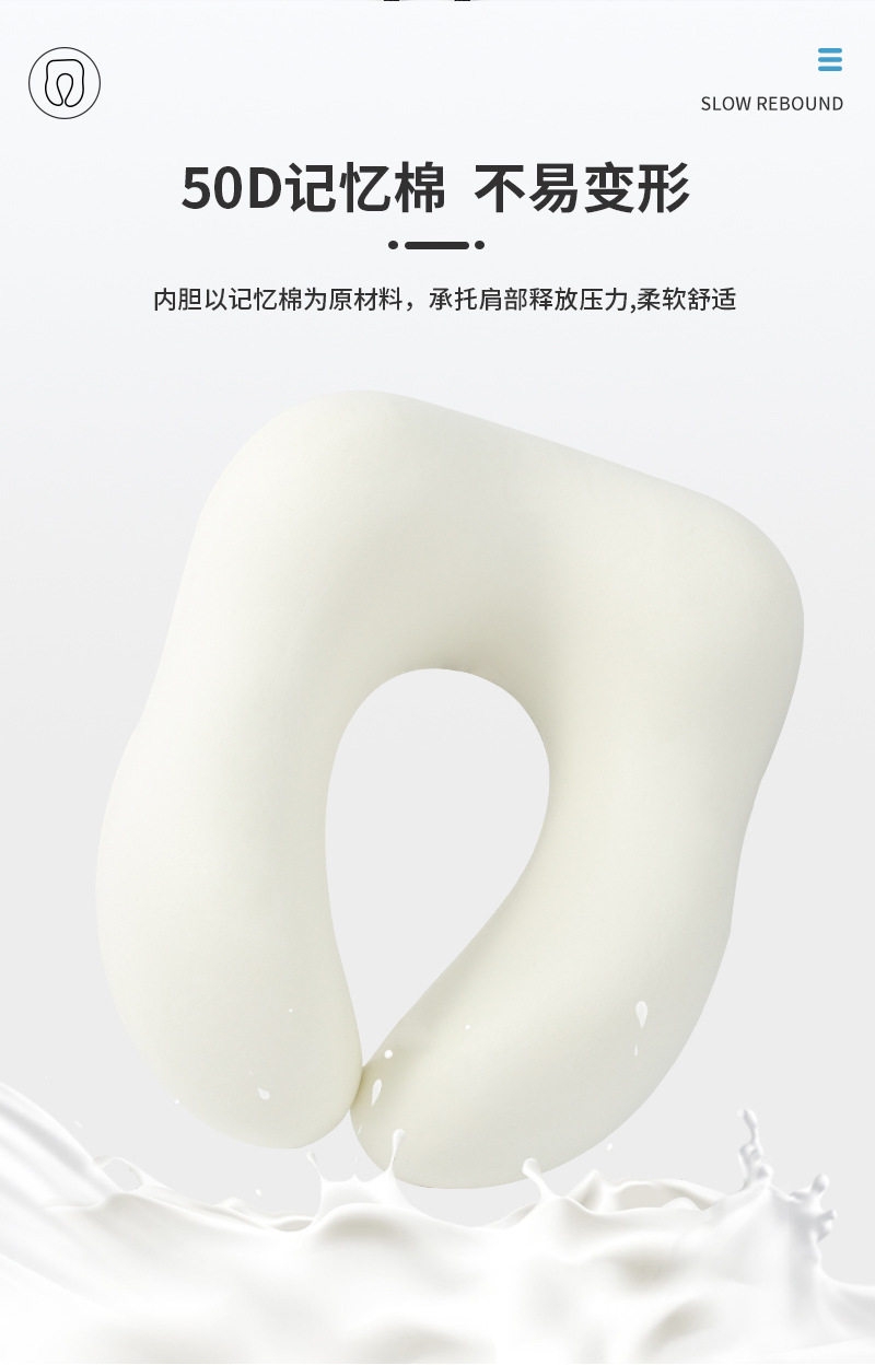 枕芯材质记忆棉内胆,记忆U型护颈;长途出行更轻松,布艺收纳盒,轻量出行;亲肤透气,更舒适