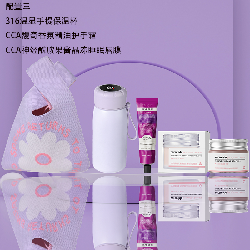 配置三:316温显手提保温杯 CCA馥奇香氛精油护手霜 CCA神经酰胺果酱晶冻睡眠唇膜