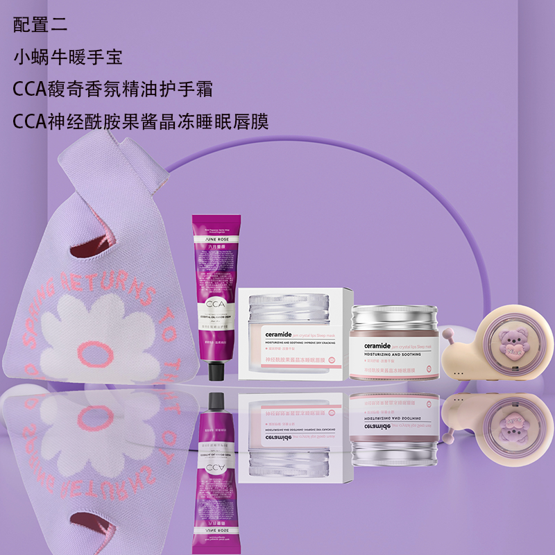 配置二:小蜗牛暖手宝 CCA馥奇香氛精油护手霜 CCA神经酰胺果酱晶冻睡眠唇膜