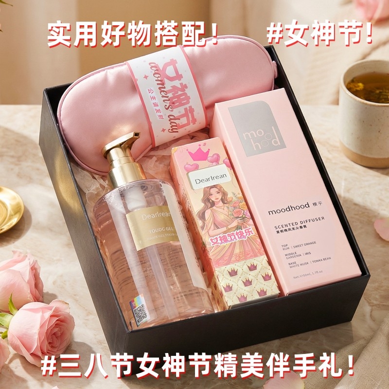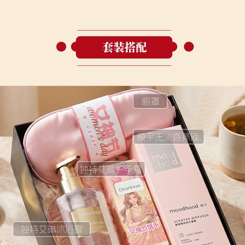 组合:女神节公主眼罩*1、moodhood无火香氛液50ML*1、独特艾琳香氛护手霜35g*1、独特艾琳香氛沐浴露250ML*1