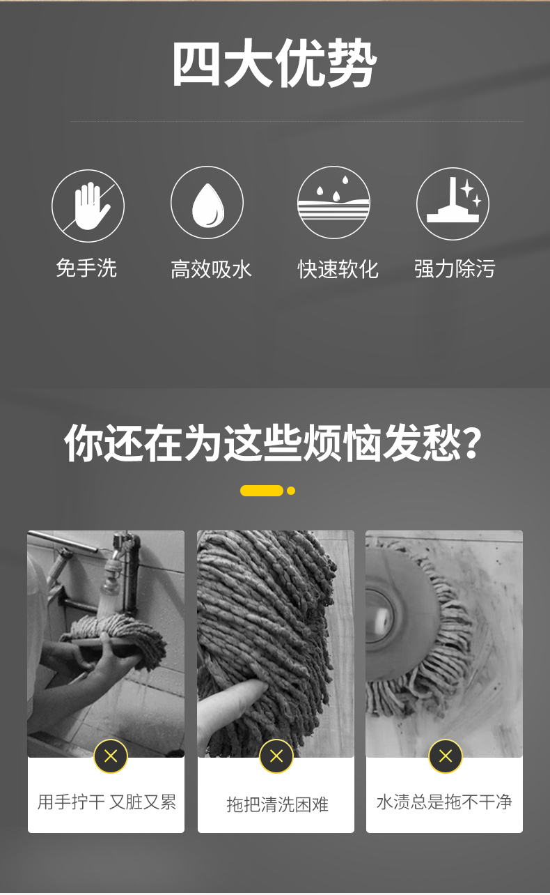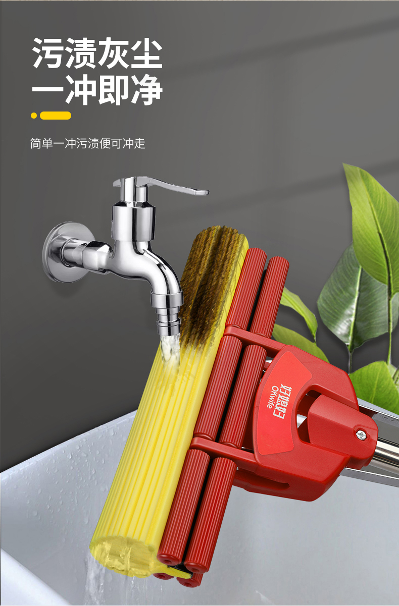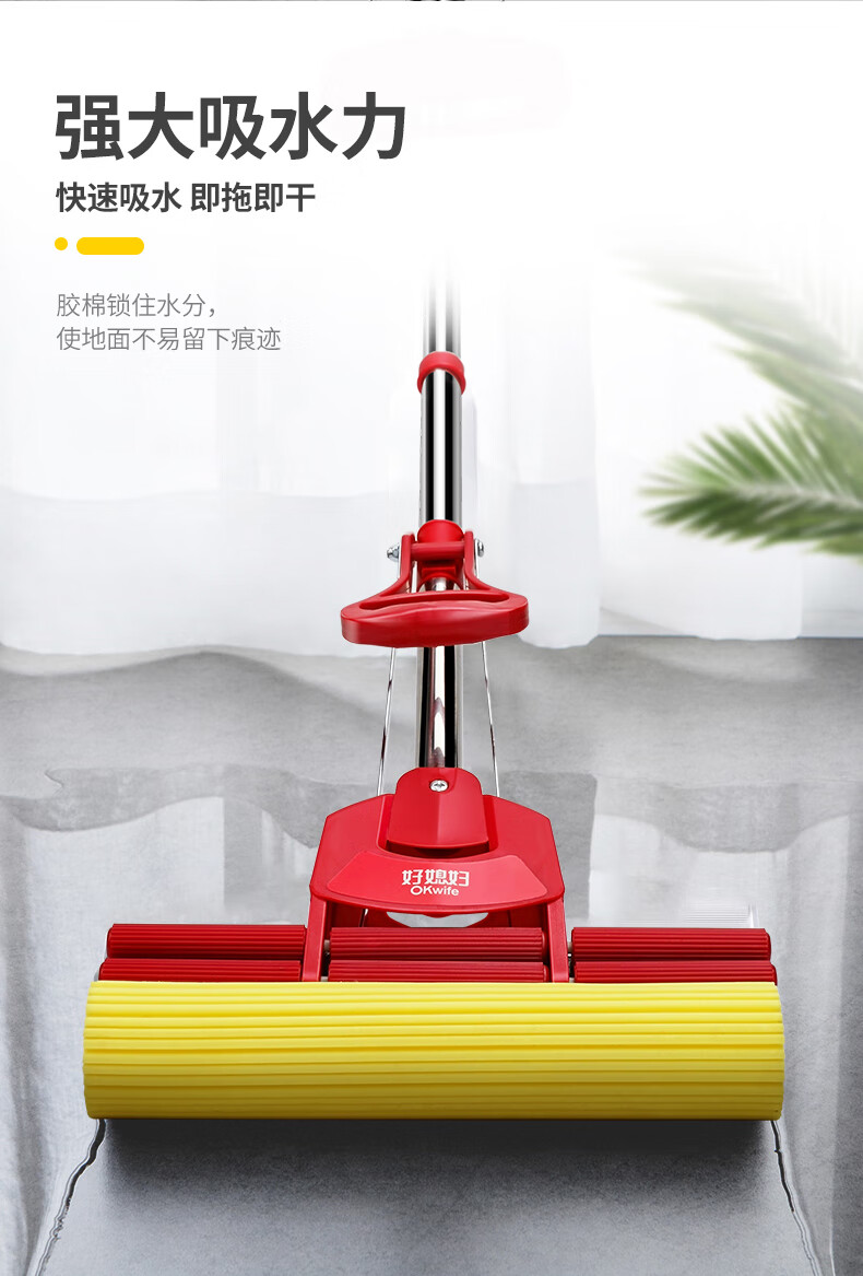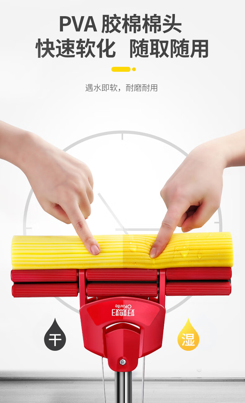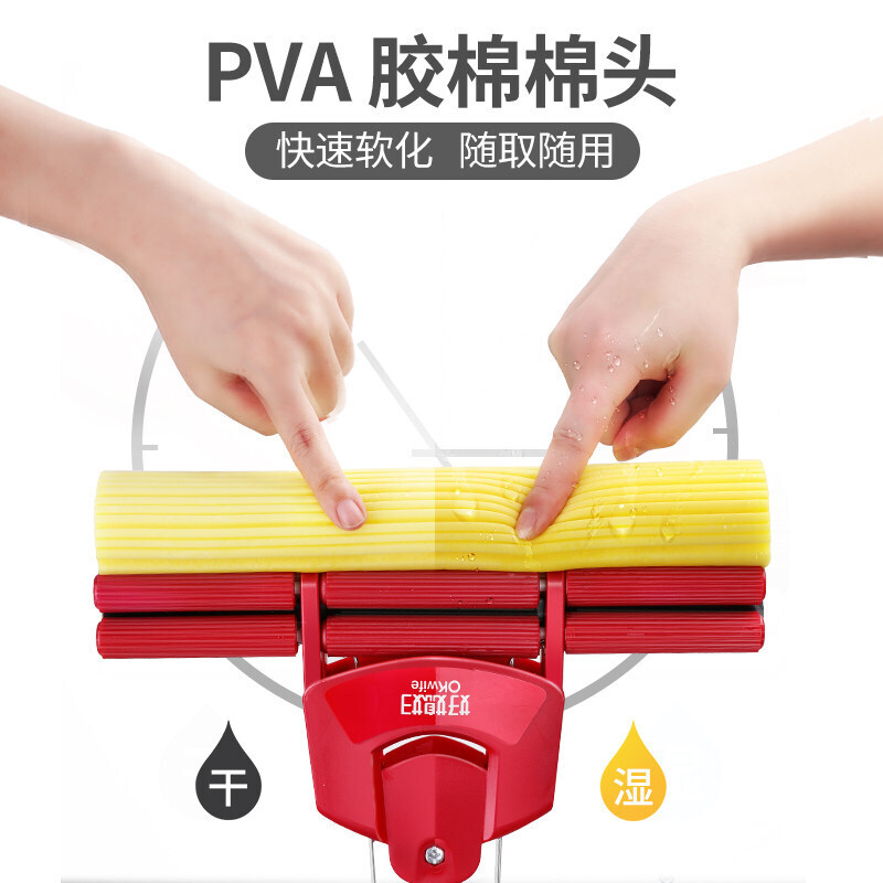 强大吸水力;快速吸水,即拖即干;胶棉锁住水分,使地面不易留下痕迹