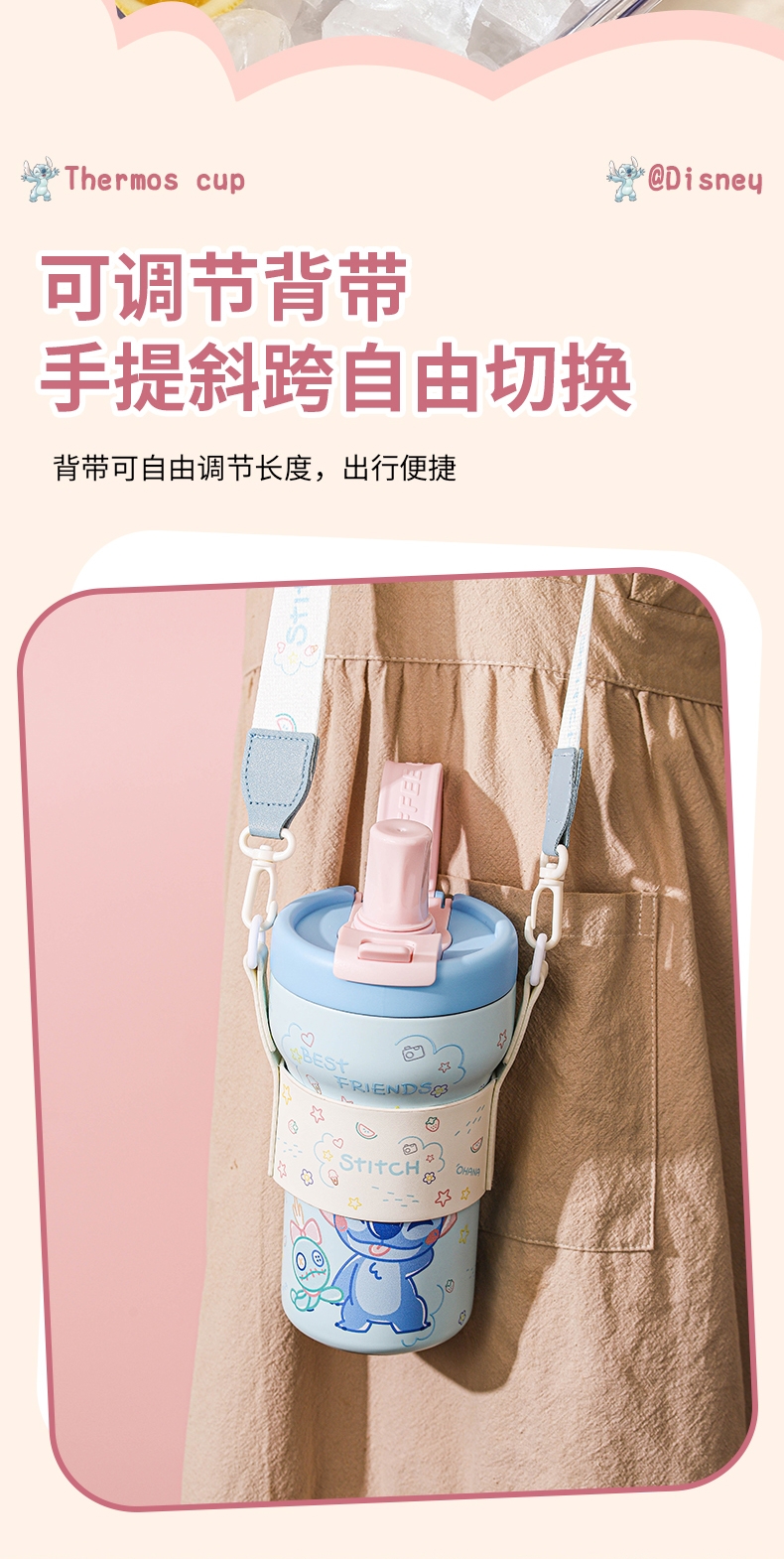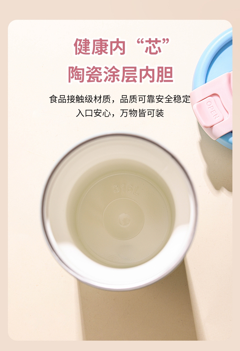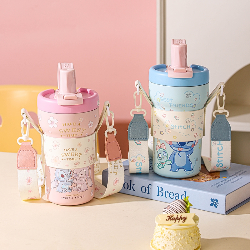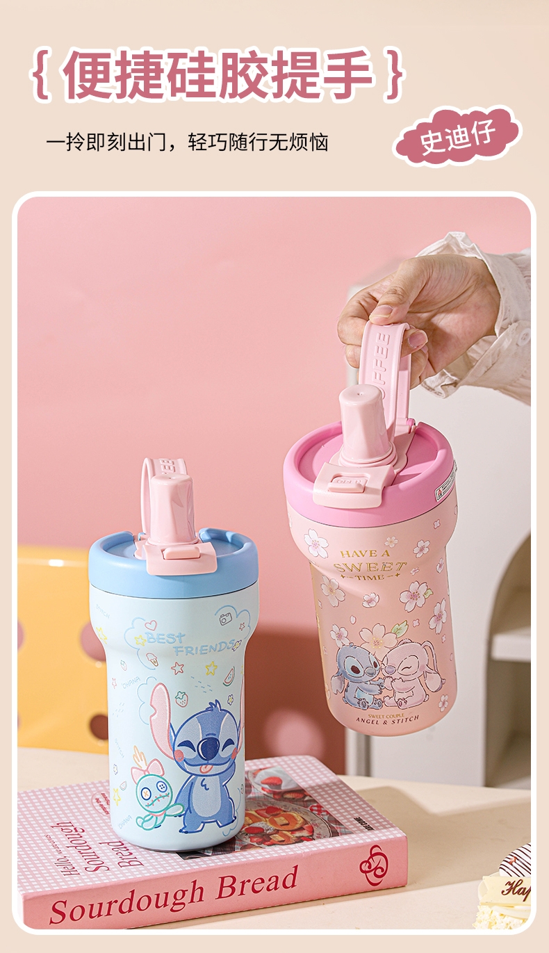 迪士尼正品授权;双饮陶瓷覆层内胆保温杯;杯绳杯套可外出便携携带