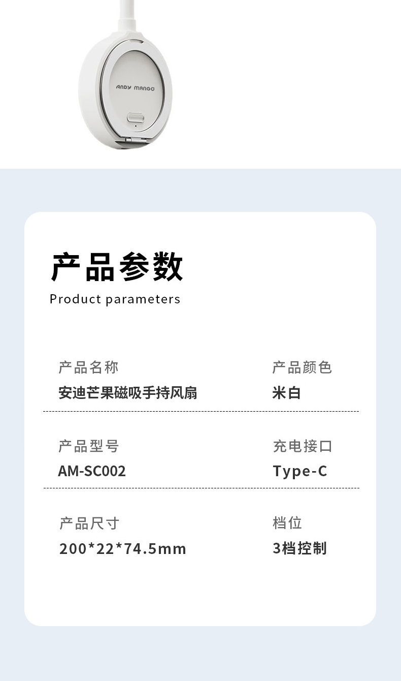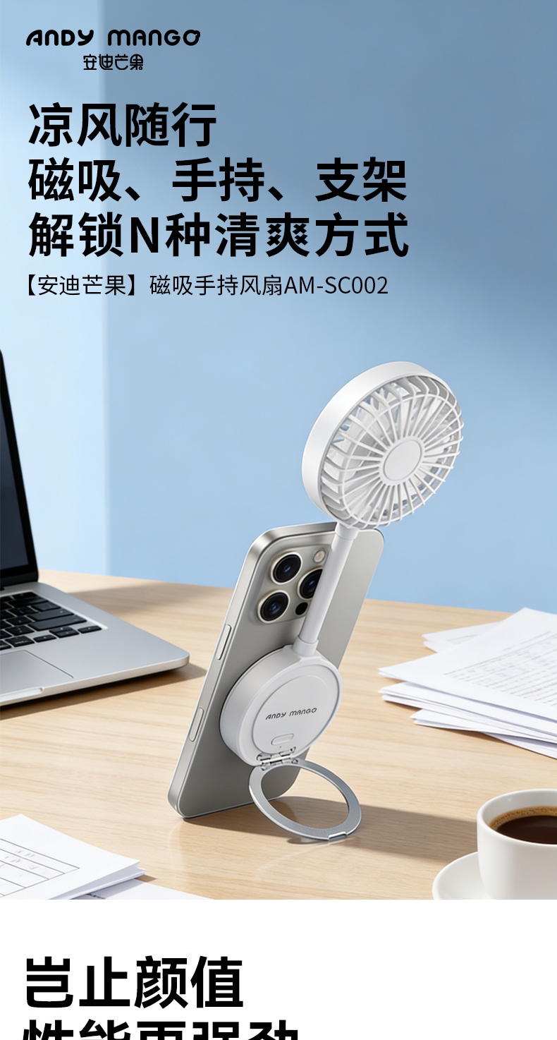 安迪芒果 便携多功能磁吸风扇AM-SC002