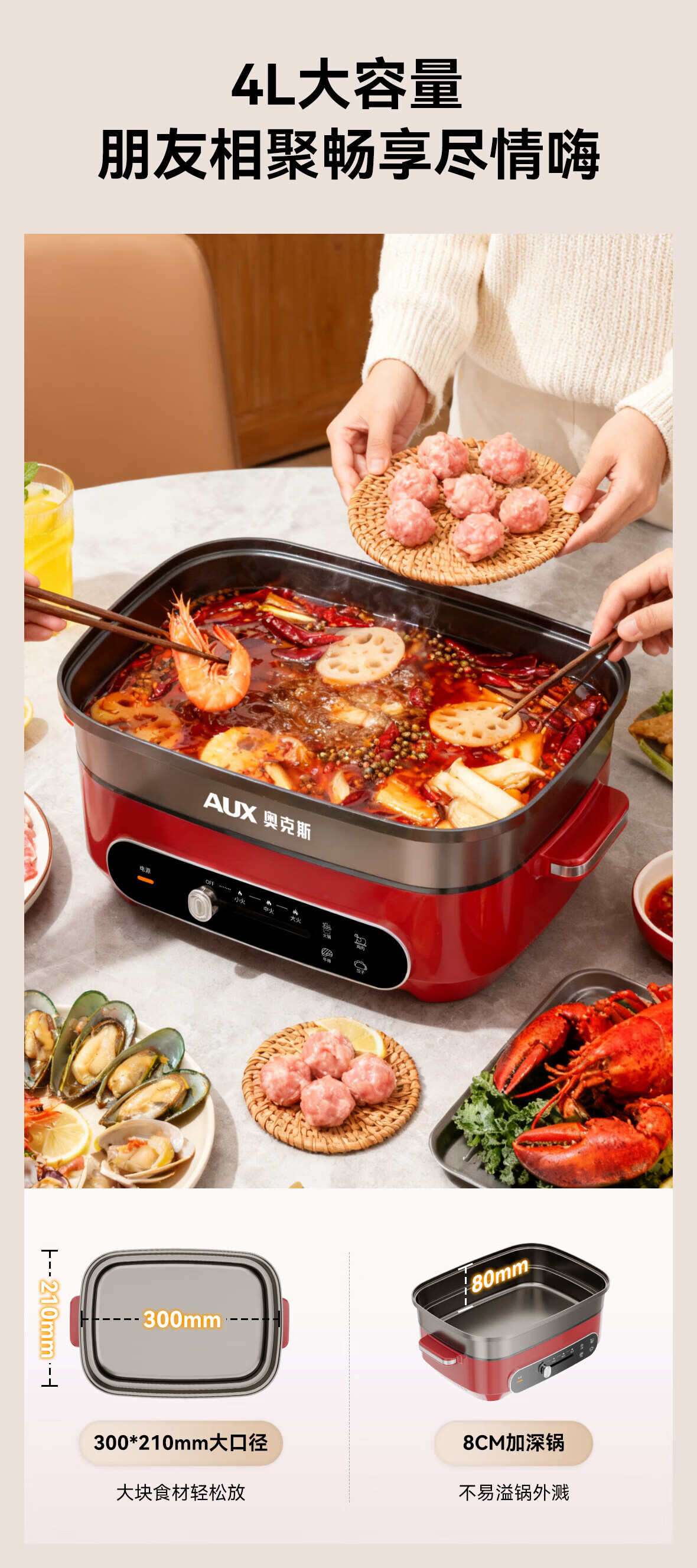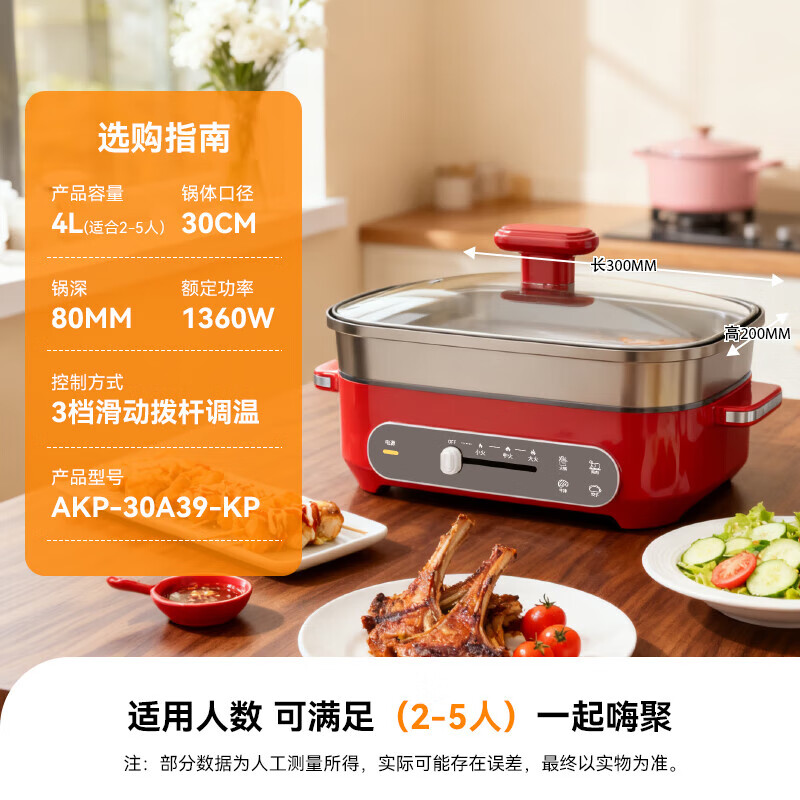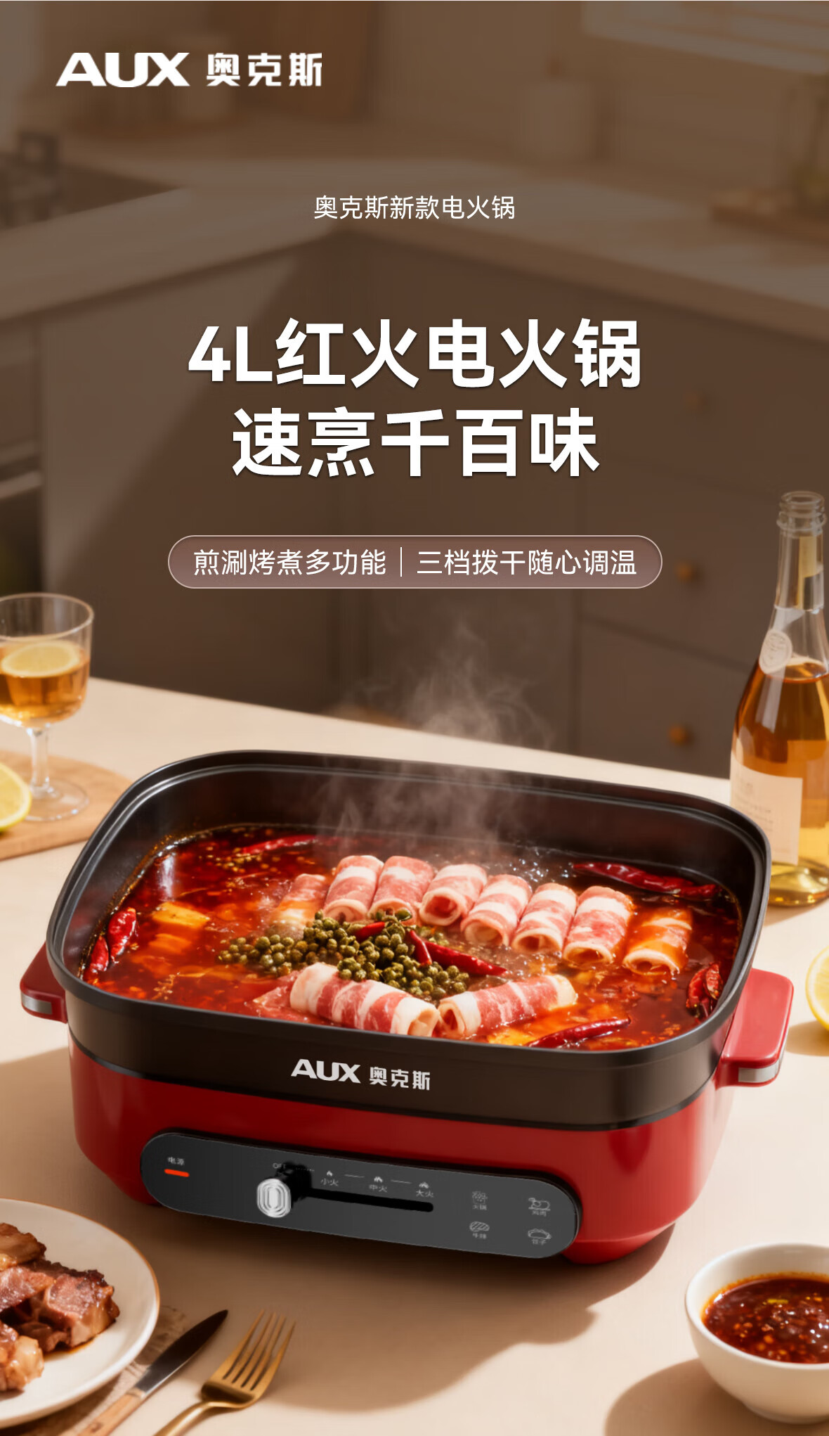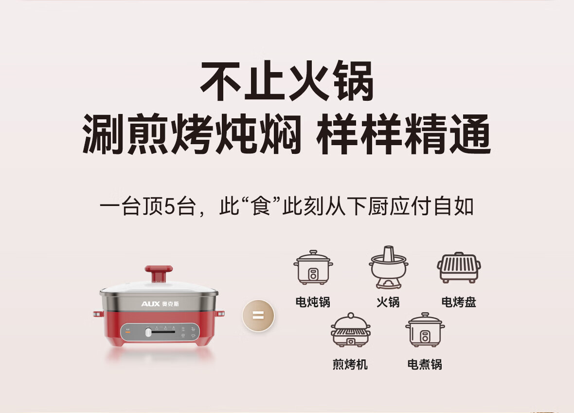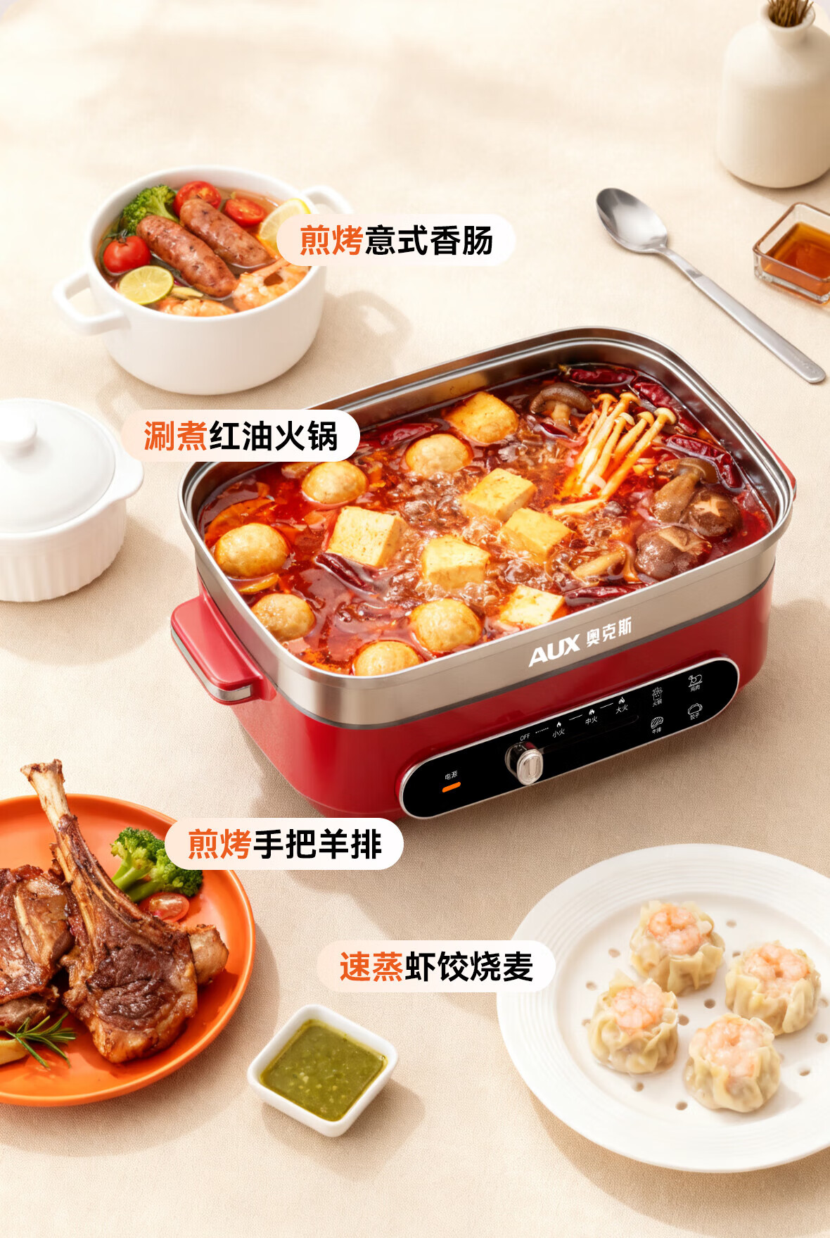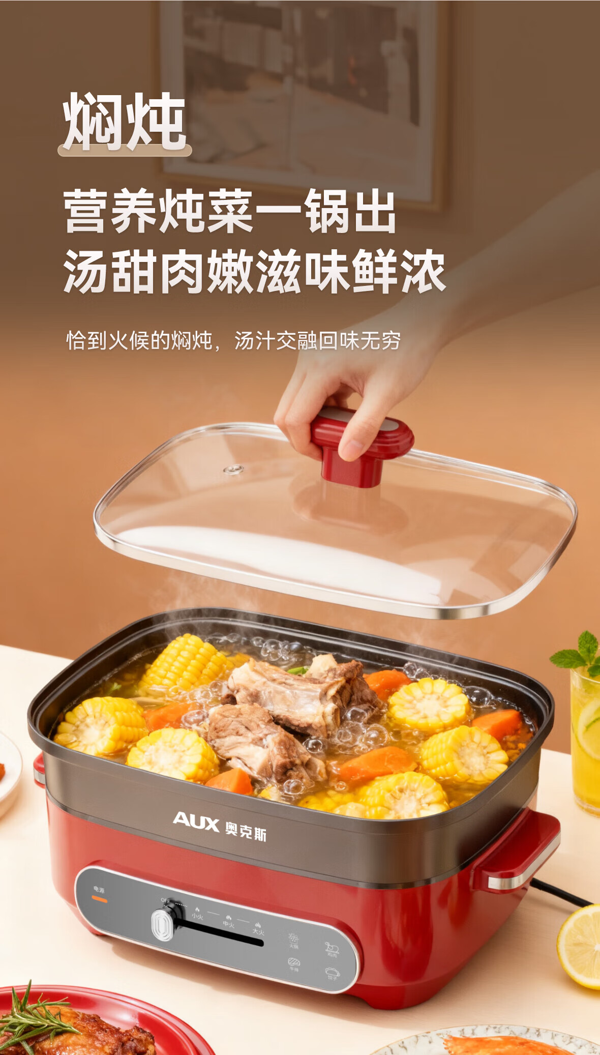 4L大容量,满足一家多口使用;三档拨杆调温,简单便捷,老人一教就会; 可视化玻璃盖,红色外观百搭家具不过时