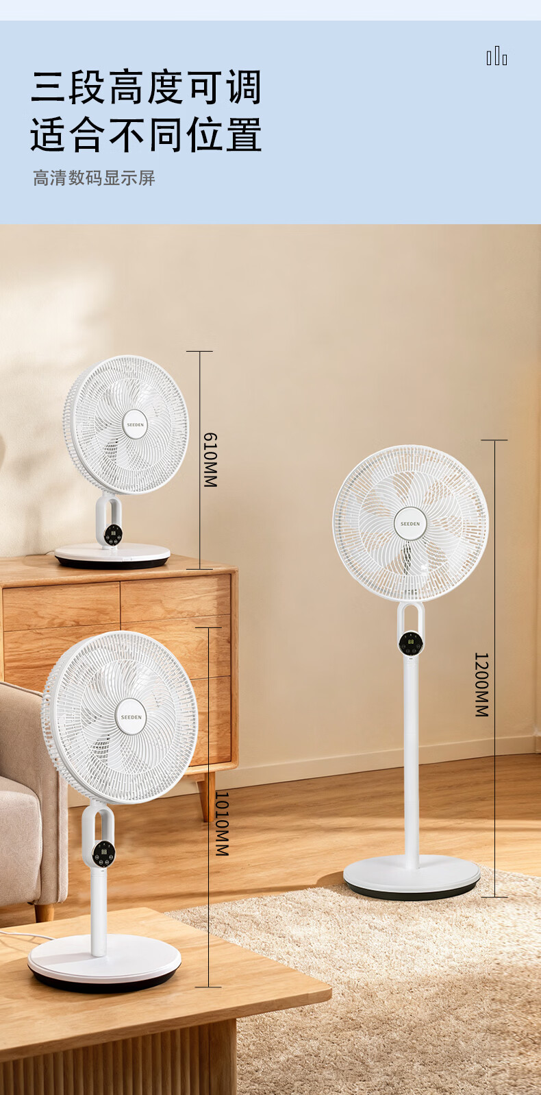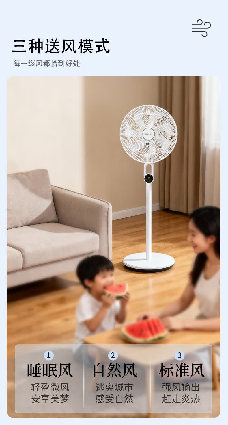 3种送风模式:睡眠风、自然风、标准风 ;3合一台/立/地高度自由调节;液晶显示屏