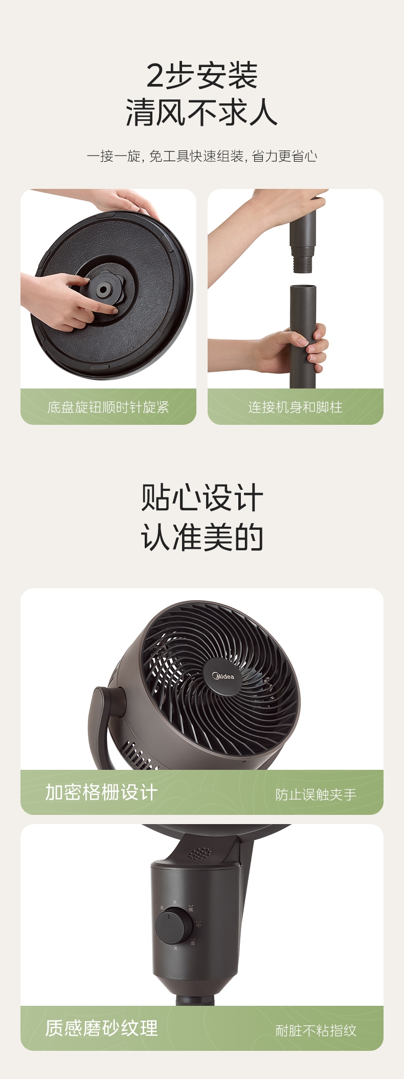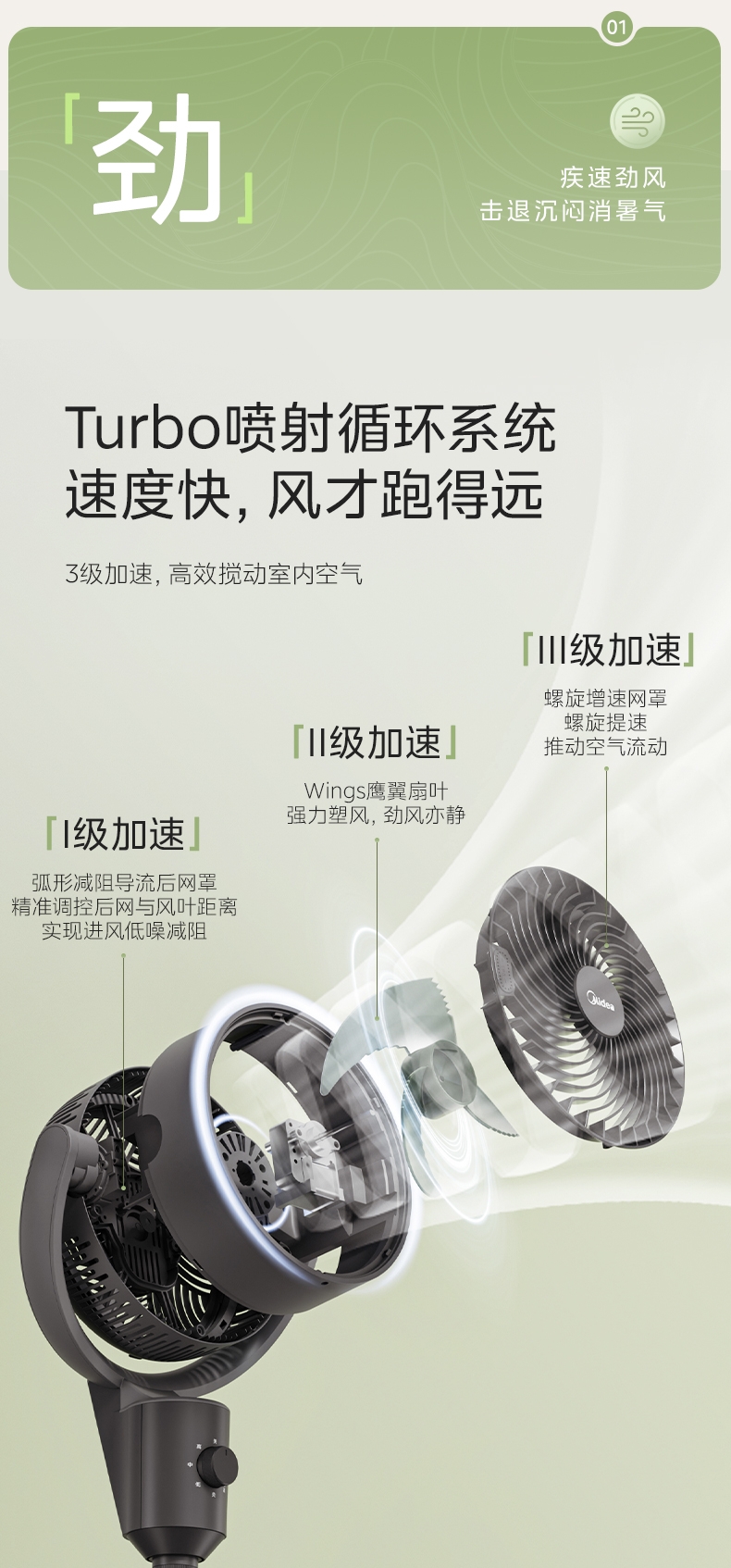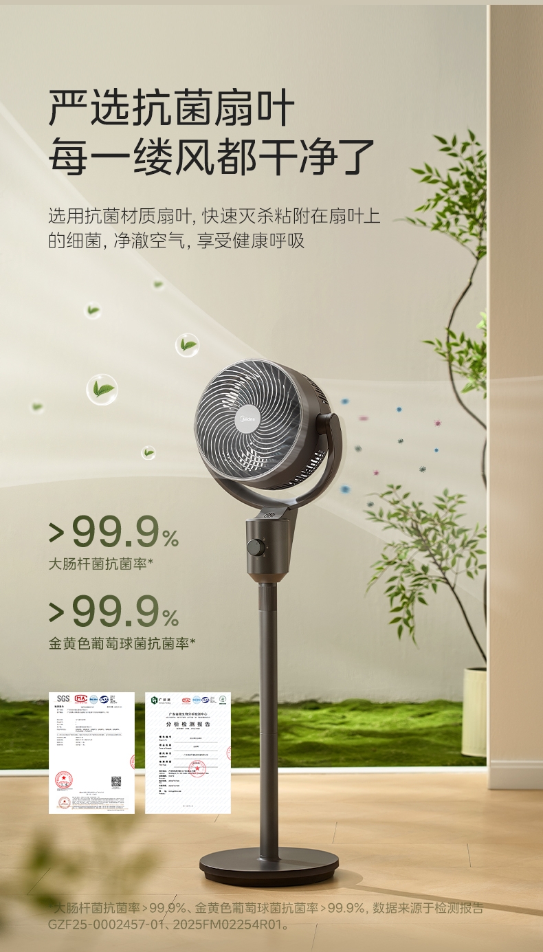 Turbo喷射循环系统,加速空气循环;严选抗菌扇叶 吹出阵阵净风;随心香设计,风起无蚊扰