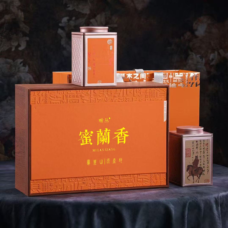 这款礼盒是双拼今年的新款春茶;鸭屎香拼蜜兰香茶香之王茶中香水;叶底边缘朱红兰花香天然独特滋味浓醇鲜爽;茶味十足有蜜薯香汤感甘甜回甘霸气;喝完口齿留香持久耐冲泡