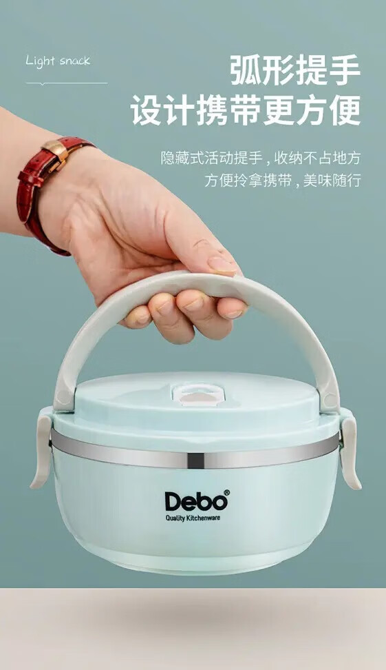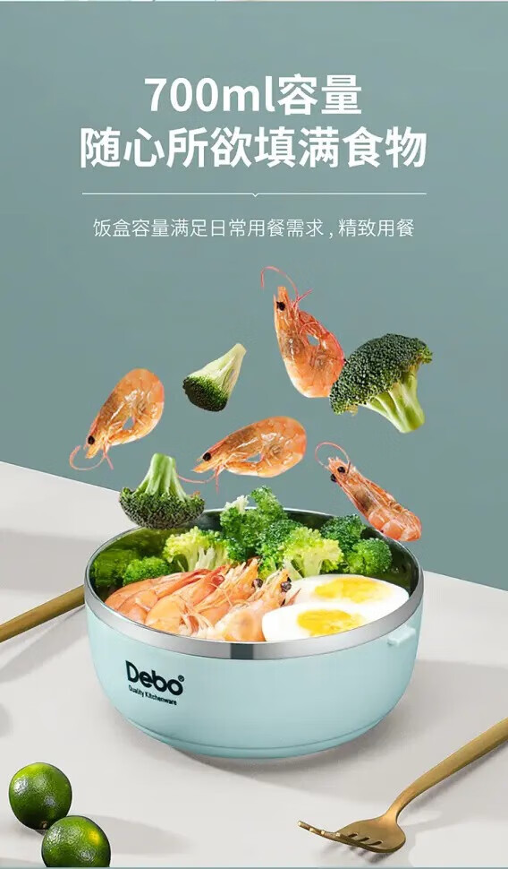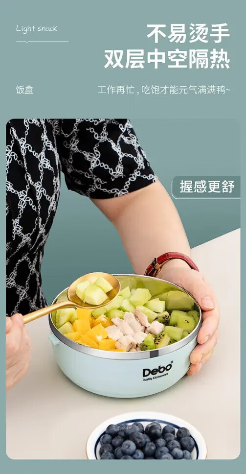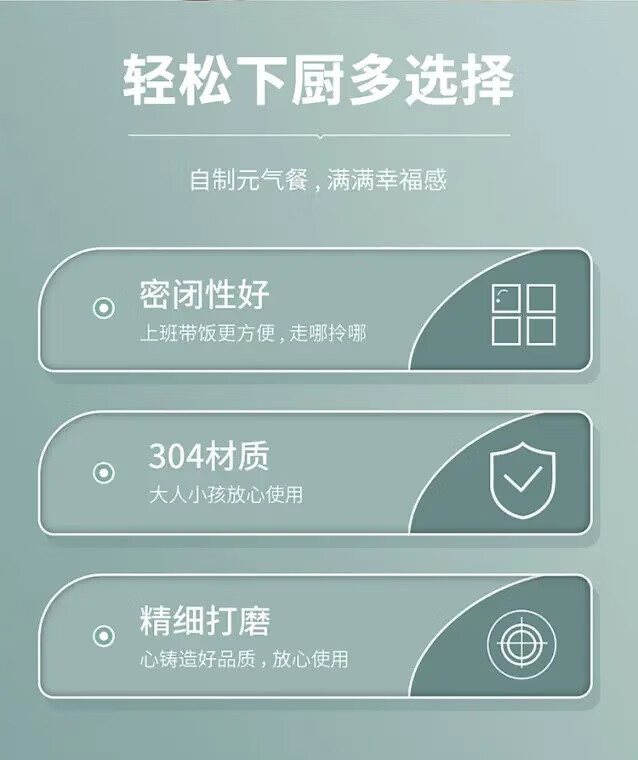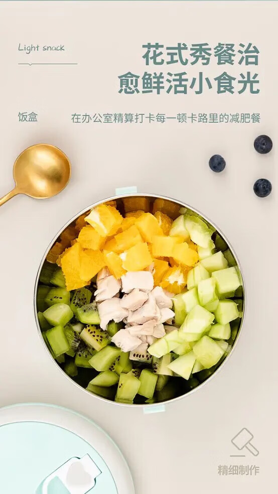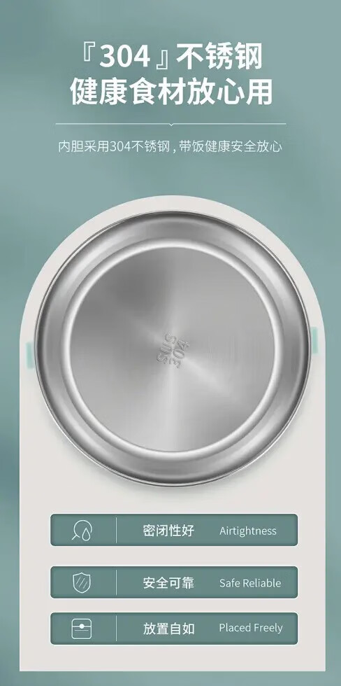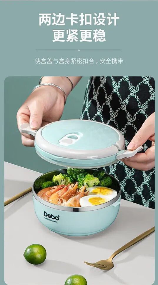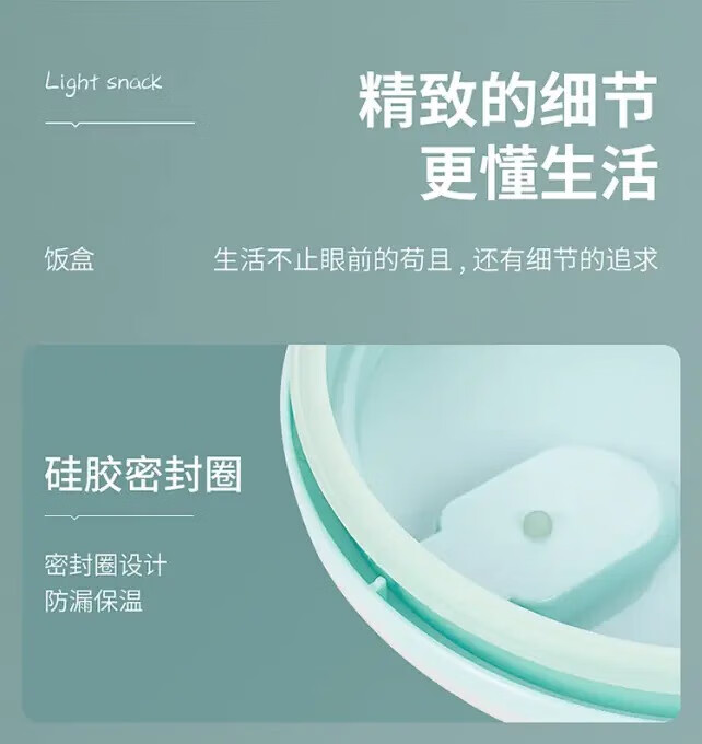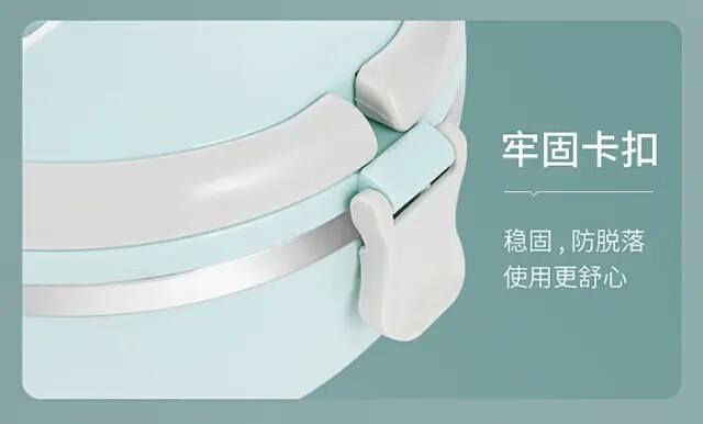 采用食品级塑料和304不锈钢合制而成,卫生安全;碗体体密闭性好,高效隔热;盒盖采用扣合设计,使盒盖与盒身紧密扣合,安全携带