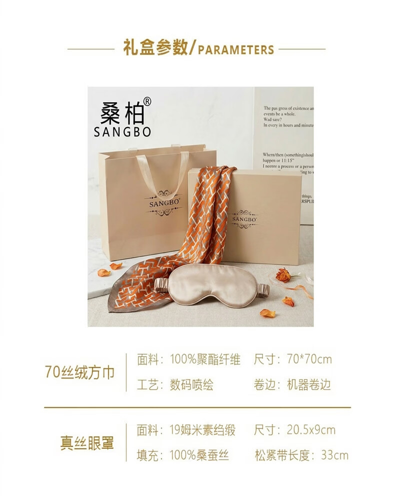 精美礼盒包装;桑蚕丝眼罩;眼罩里外填充物均为桑蚕丝