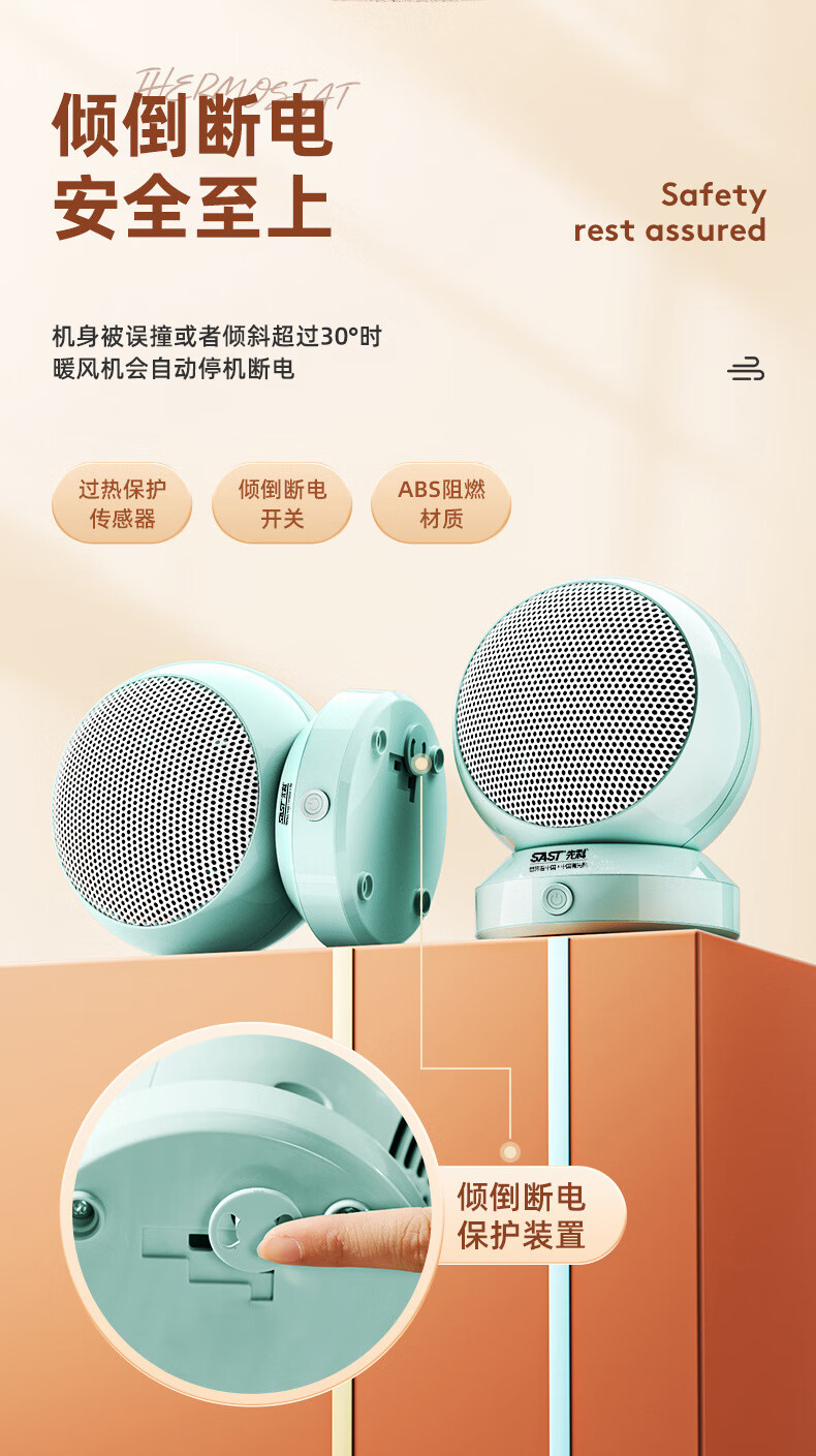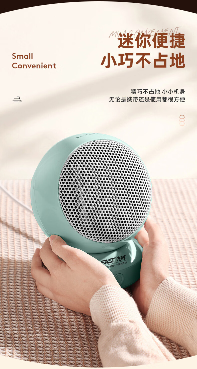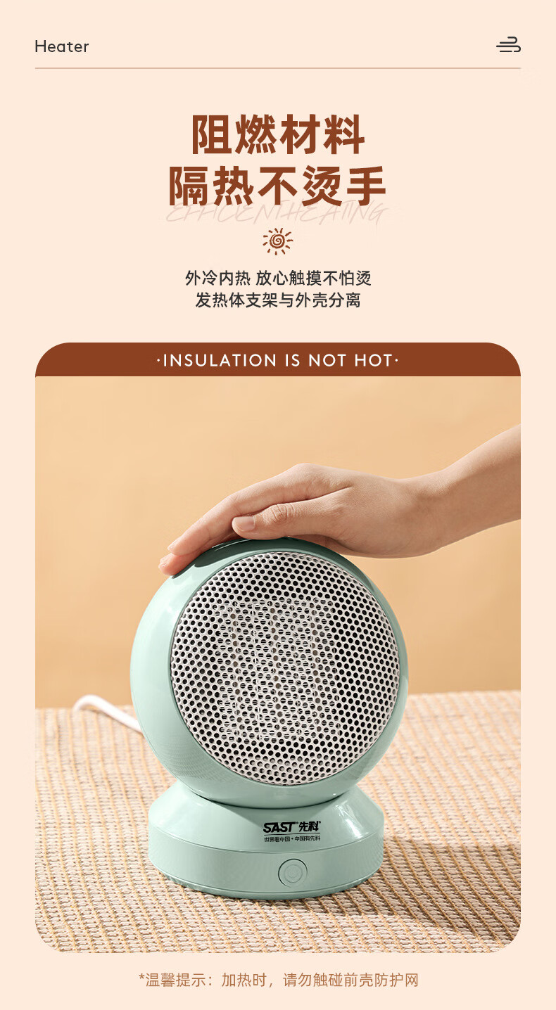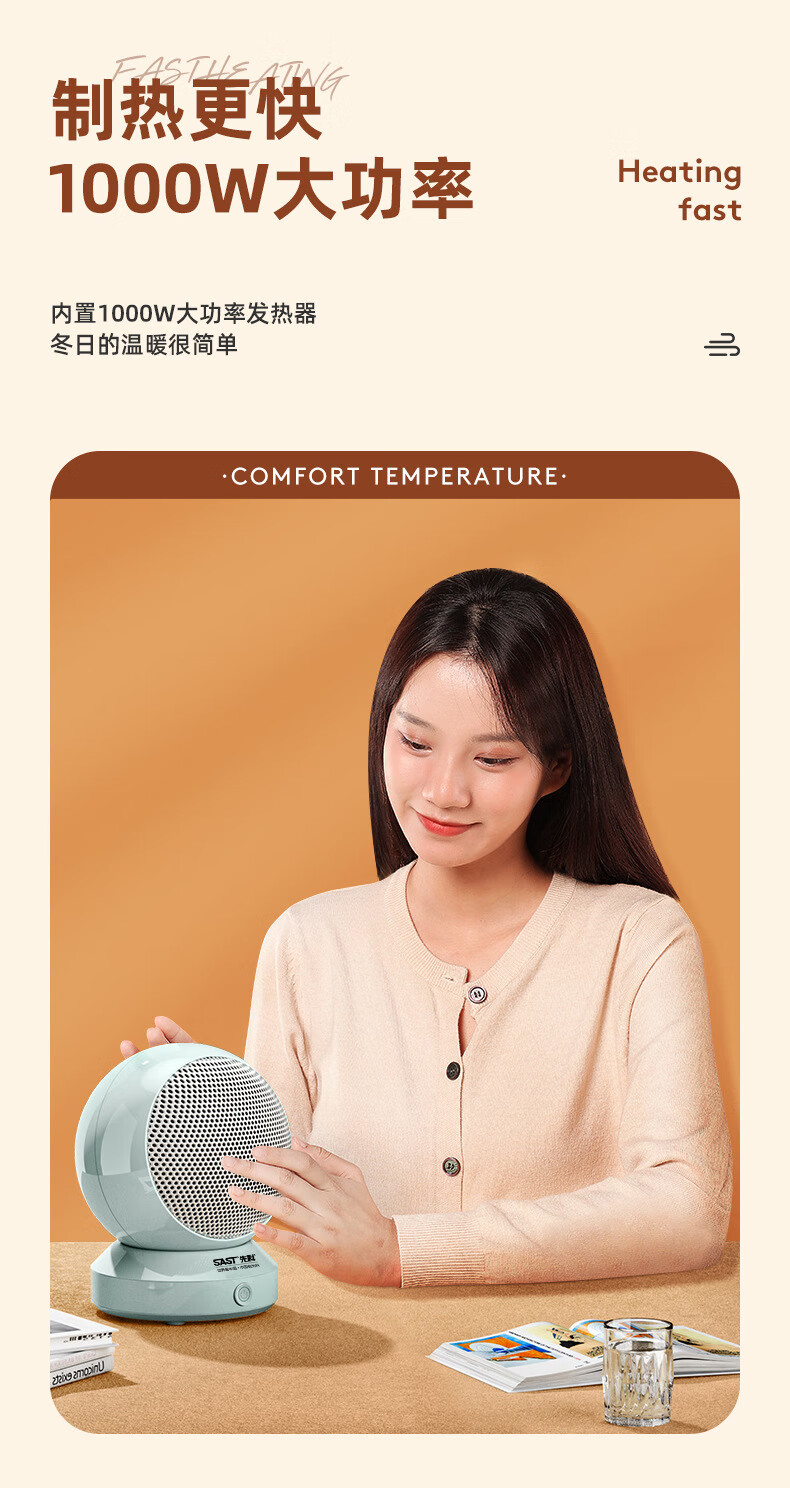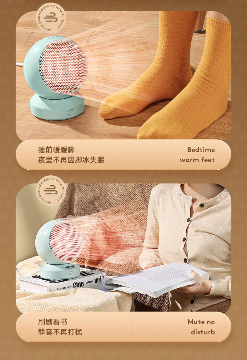 居浴两用:即开即热,手动调节;倾倒断电:过热保护,优质PTC陶瓷加热;循环送暖:冷暖两用,高档1000W;母婴优选:防烫格栅,金属网罩使用安全