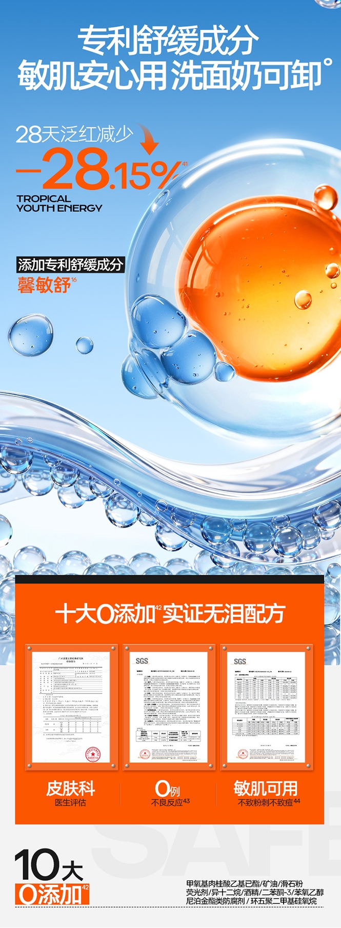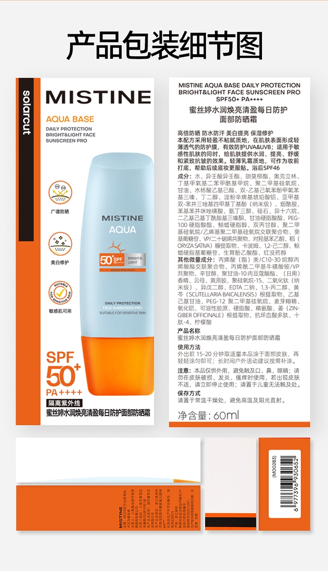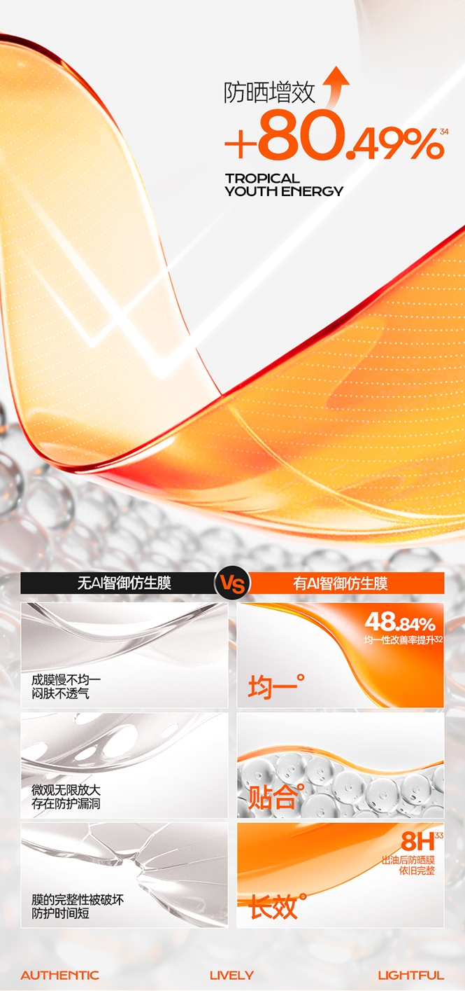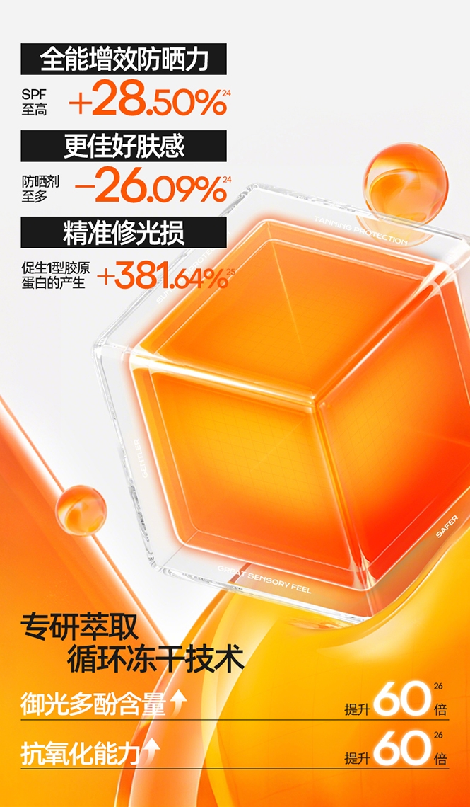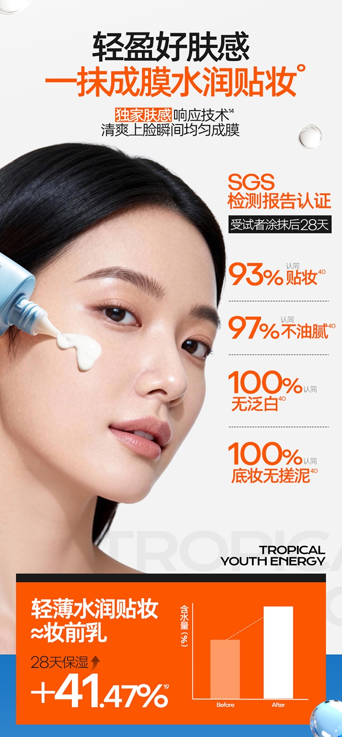速成膜不易粘腻;高倍防晒力;多重养肤精粹